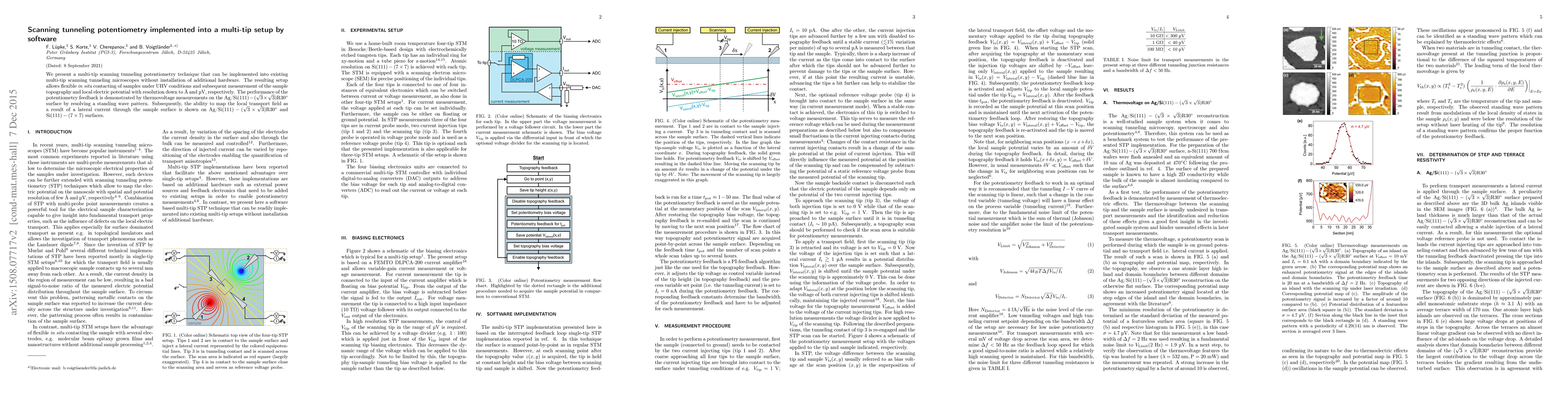 Researchers developed a software-based method to integrate scanning tunneling potentiometry into existing multi-tip scanning tunneling microscopes without hardware changes, enabling precise measurements of sample topography and electric potential.