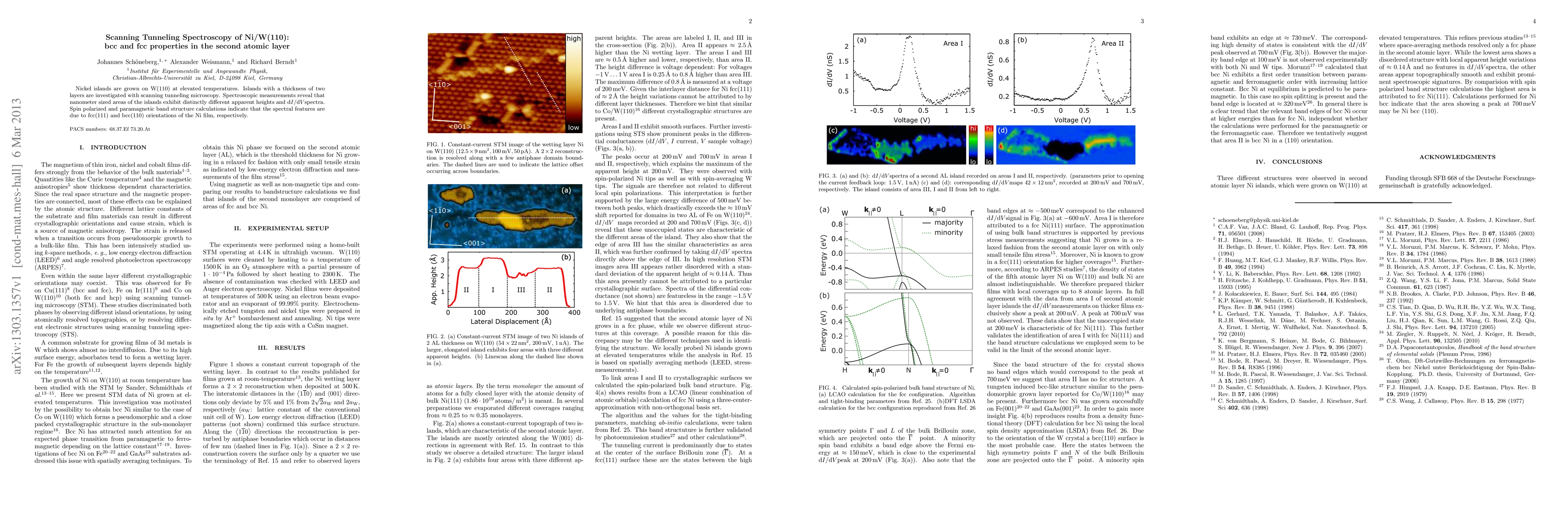 Nickel islands are grown on W(110) at elevated temperatures. Islands with a thickness of two layers are investigated with scanning tunneling microscopy. Spectroscopic measurements reveal that nanometer sized areas of the islands exhibit distinctly different apparent heights and dI/dV spectra. Spin polarized and paramagnetic band structure calculations indicate that the spectral features are due to fcc(111) and bcc(110) orientations of the Ni film, respectively.