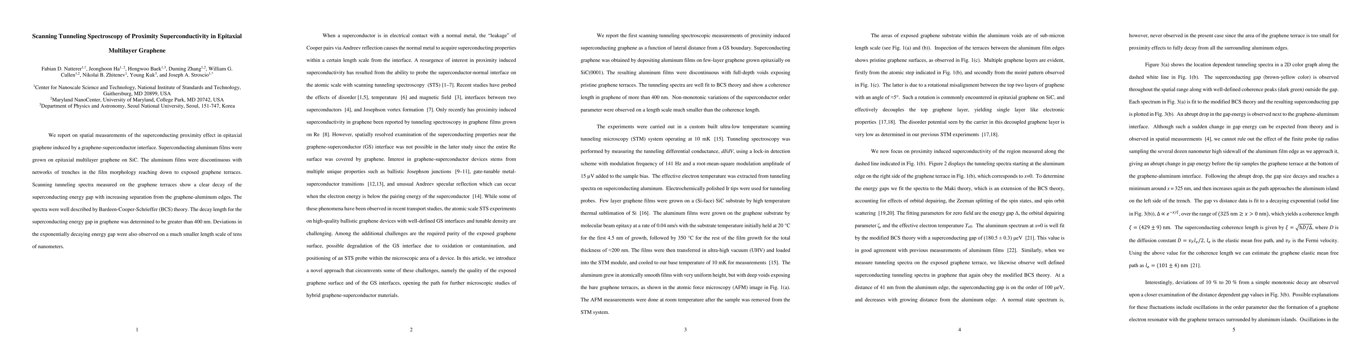 This study investigates the superconducting proximity effect in epitaxial multilayer graphene via scanning tunneling spectroscopy, revealing a decay of the superconducting energy gap with distance from graphene-aluminum interfaces. The decay length exceeds 400 nm, consistent with BCS theory, though smaller scale deviations were also noted.