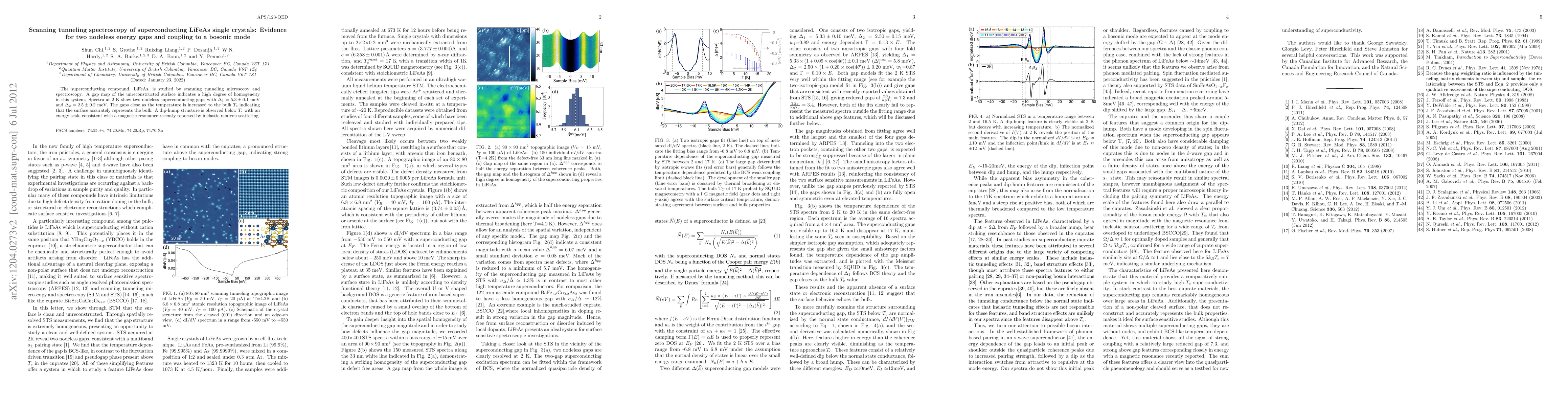 This study uses scanning tunneling spectroscopy to reveal two nodeless energy gaps in superconducting LiFeAs single crystals, with $\Delta_1=5.3\pm0.1$ meV and $\Delta_2=2.5\pm0.2$ meV, and identifies a coupling to a bosonic mode, suggesting a complex superconducting mechanism.