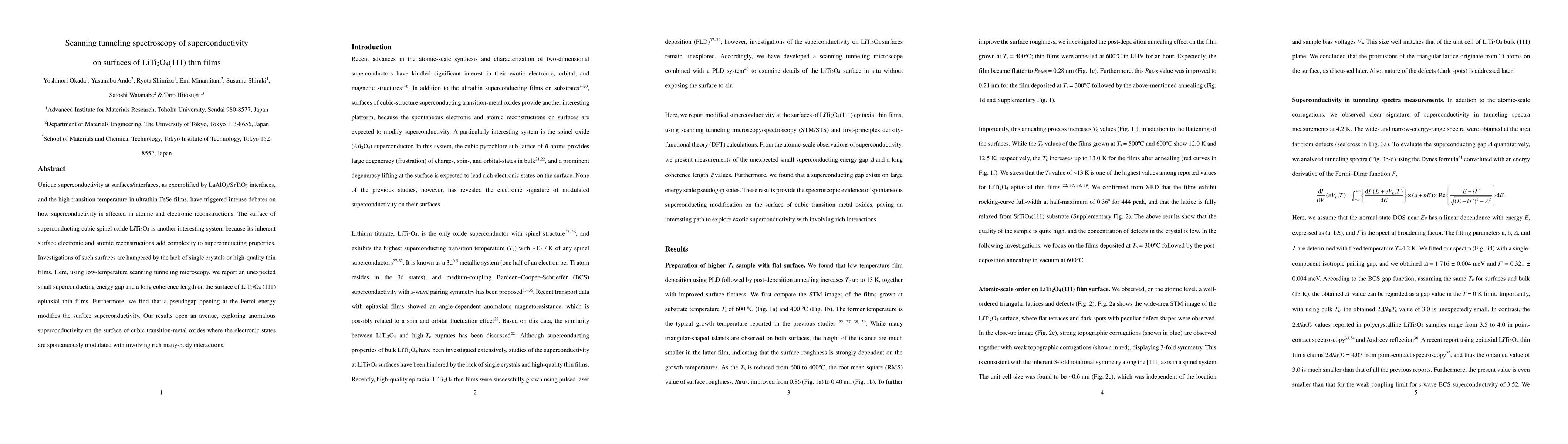 This study employs scanning tunneling microscopy to investigate superconductivity on the surface of LiTi2O4 (111) thin films, revealing a small superconducting energy gap and a long coherence length, alongside a pseudogap that influences surface superconductivity, suggesting complex many-body interactions in cubic transition-metal oxides.