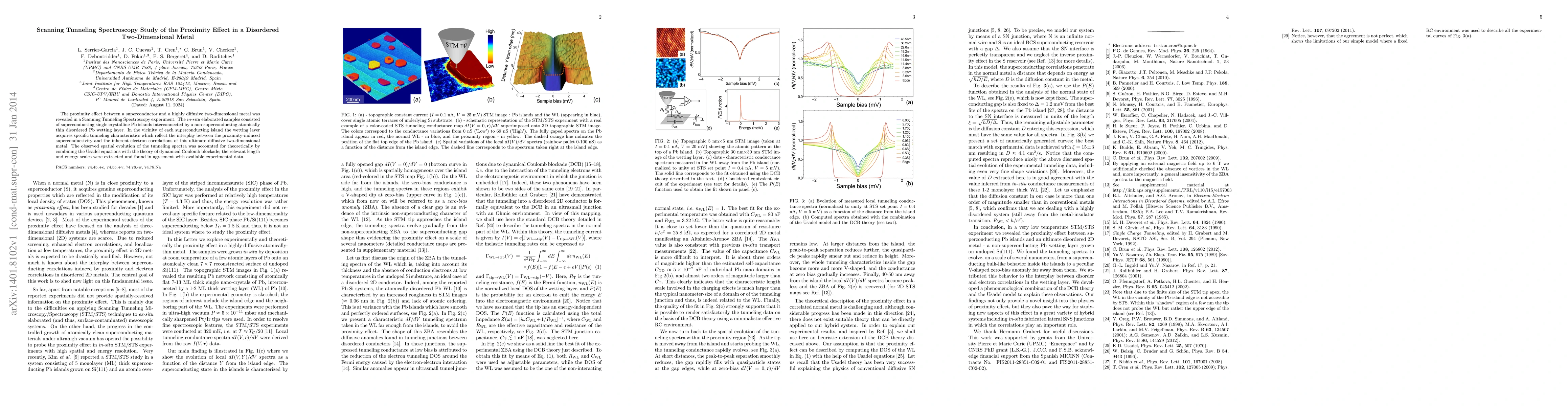 This study uses Scanning Tunneling Spectroscopy to investigate the proximity effect in a disordered two-dimensional metal adjacent to superconducting Pb islands, revealing changes in tunneling characteristics due to interplay between induced superconductivity and electron correlations. Theoretical models combining Usadel equations and Coulomb blockade theory explain the observed spatial evolution and extracted length and energy scales.