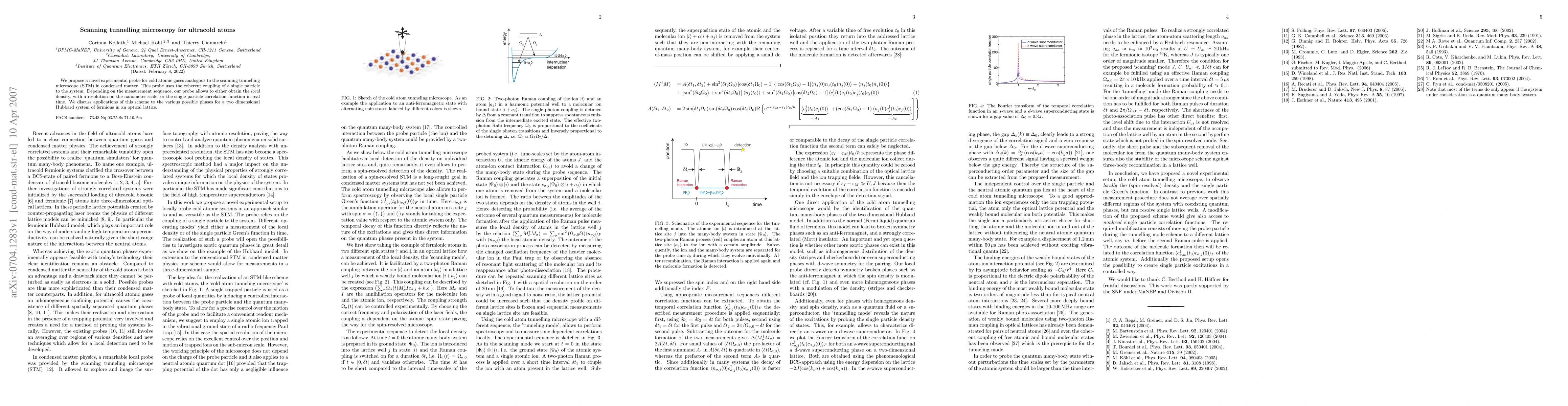 We propose a novel experimental probe for cold atomic gases analogous to the scanning tunnelling microscope (STM) in condensed matter. This probe uses the coherent coupling of a single particle to the system. Depending on the measurement sequence, our probe allows to either obtain the \emph{local} density, with a resolution on the nanometer scale, or the single particle correlation function in real time. We discuss applications of this scheme to the various possible phases for a two dimensional Hubbard system of fermions in an optical lattice.