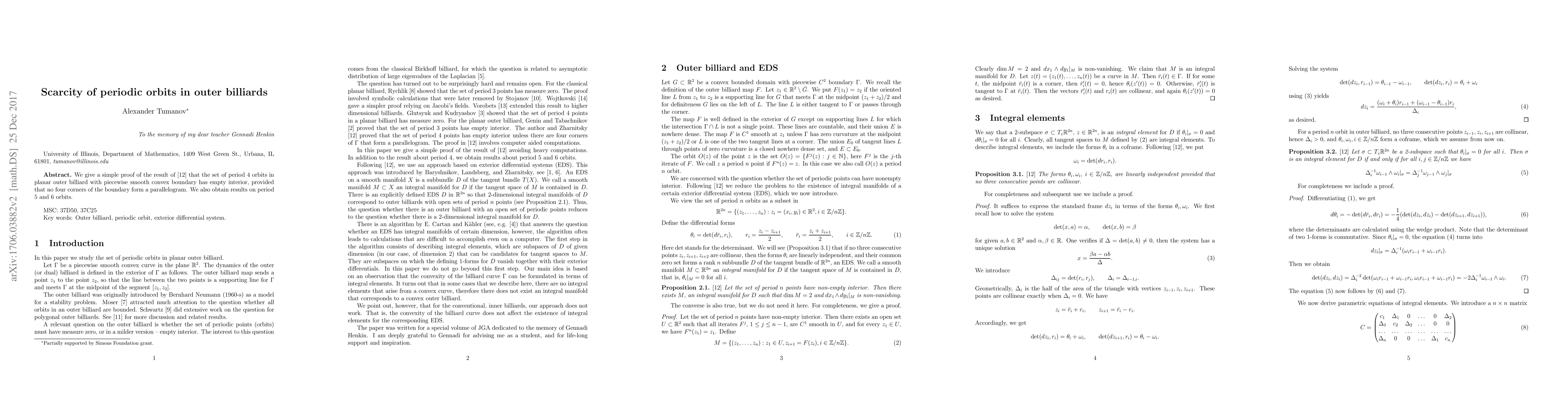 We give a simple proof of our previous result with V. Zharnitsky that the set of period 4 orbits in planar outer billiard with piecewise smooth convex boundary has empty interior, provided that no four corners of the boundary form a parallelogram. We also obtain results on period 5 and 6 orbits.
