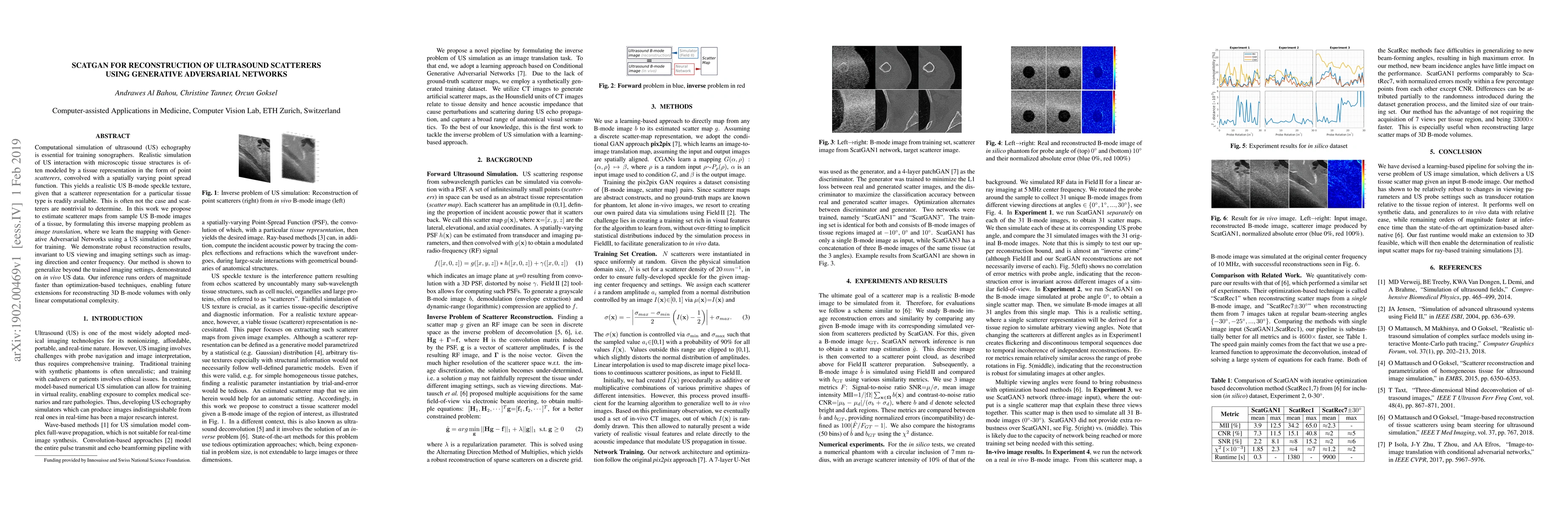 This paper proposes SCATGAN, a Generative Adversarial Network (GAN) method to reconstruct ultrasound scatterer maps from B-mode images, enabling realistic simulation of ultrasound echography. The method demonstrates robust and generalizable reconstruction results, running significantly faster than traditional optimization techniques.