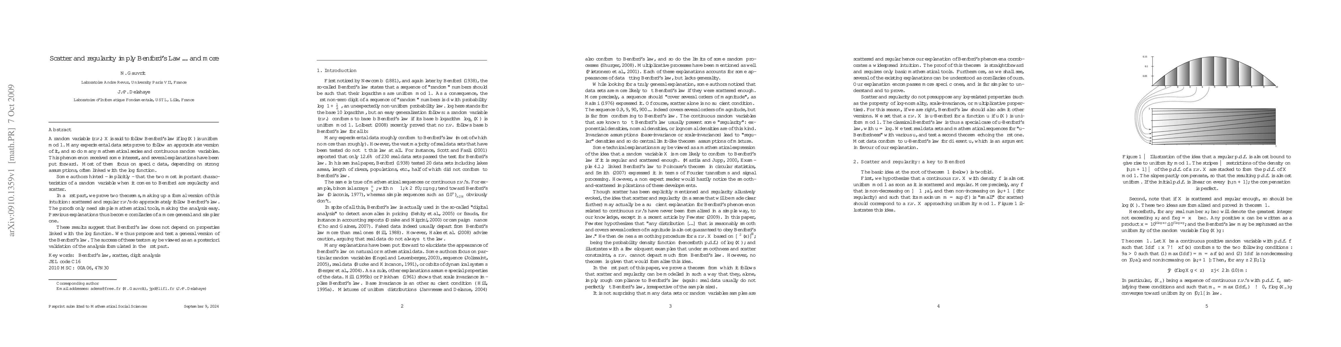 A random variable (r.v.) X is said to follow Benford's law if log(X) is uniform mod 1. Many experimental data sets prove to follow an approximate version of it, and so do many mathematical series and continuous random variables. This phenomenon received some interest, and several explanations have been put forward. Most of them focus on specific data, depending on strong assumptions, often linked with the log function. Some authors hinted - implicitly - that the two most important characteristics of a random variable when it comes to Benford are regularity and scatter. In a first part, we prove two theorems, making up a formal version of this intuition: scattered and regular r.v.'s do approximately follow Benford's law. The proofs only need simple mathematical tools, making the analysis easy. Previous explanations thus become corollaries of a more general and simpler one. These results suggest that Benford's law does not depend on properties linked with the log function. We thus propose and test a general version of the Benford's law. The success of these tests may be viewed as an a posteriori validation of the analysis formulated in the first part.