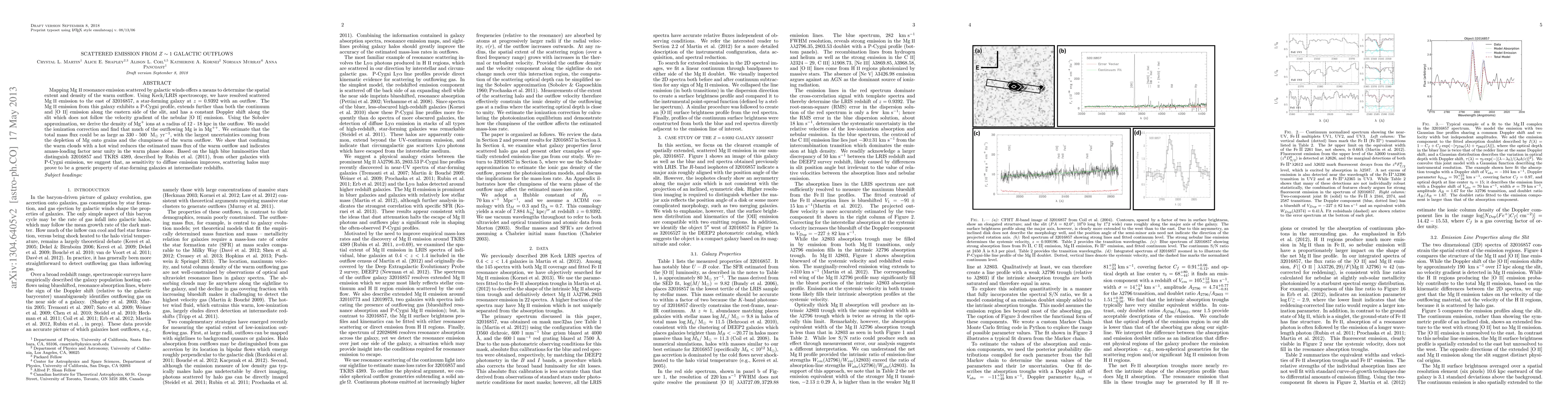 The research uses Keck/LRIS spectroscopy to resolve scattered Mg II emission from a z=0.9392 star-forming galaxy's outflow, estimating the outflow's spatial extent and density. The study finds a mass flux of 330-500 solar masses per year, suggesting a hot wind confines warm clouds with a mass-loading factor near unity. The authors propose scattering halos may be common in intermediate-redshift star-forming galaxies as detection sensitivity improves.