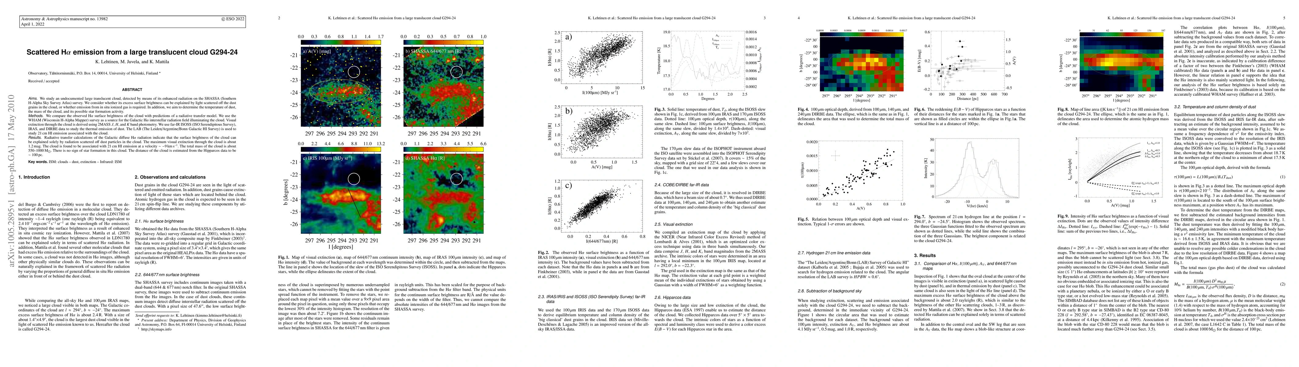 This study investigates a large translucent cloud G294-24, finding that its enhanced H-alpha emission is due to scattered light from dust grains rather than ionized gas. The cloud has a mass of 550-1000 solar masses, a maximum visual extinction of 1.2 mag, and no evidence of star formation.