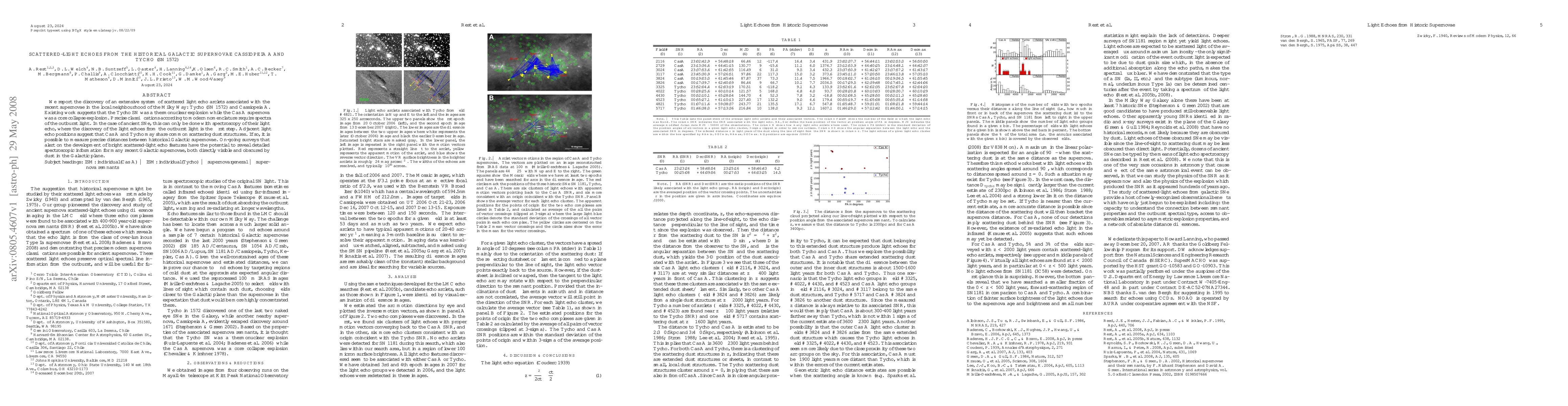 This paper reports the discovery of scattered light echo arclets from the historical supernovae Tycho (SN 1572) and Cassiopeia A, suggesting shared scattering dust structures. These light echoes provide a method to classify ancient supernovae and potentially measure distances between them.