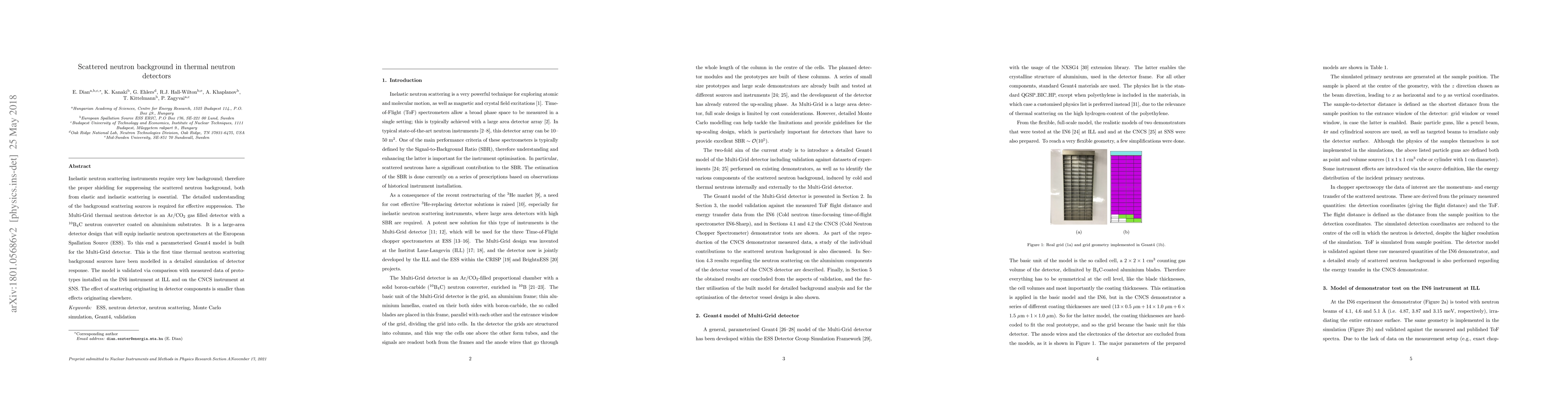 Researchers developed a parameterized Geant4 model to simulate scattered neutron background in thermal neutron detectors, validating it with measured data from prototype instruments at the IN6 and CNCS facilities.