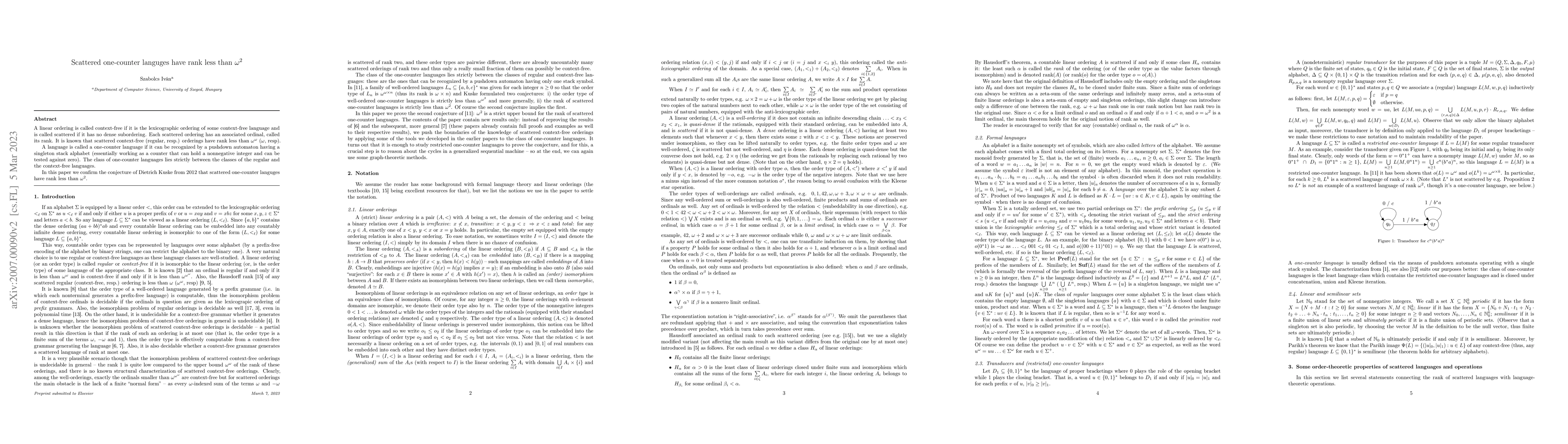 This paper confirms the conjecture that scattered one-counter languages have a rank less than $\omega^2$, expanding on existing knowledge that scattered context-free languages have ranks less than $\omega^\omega$.