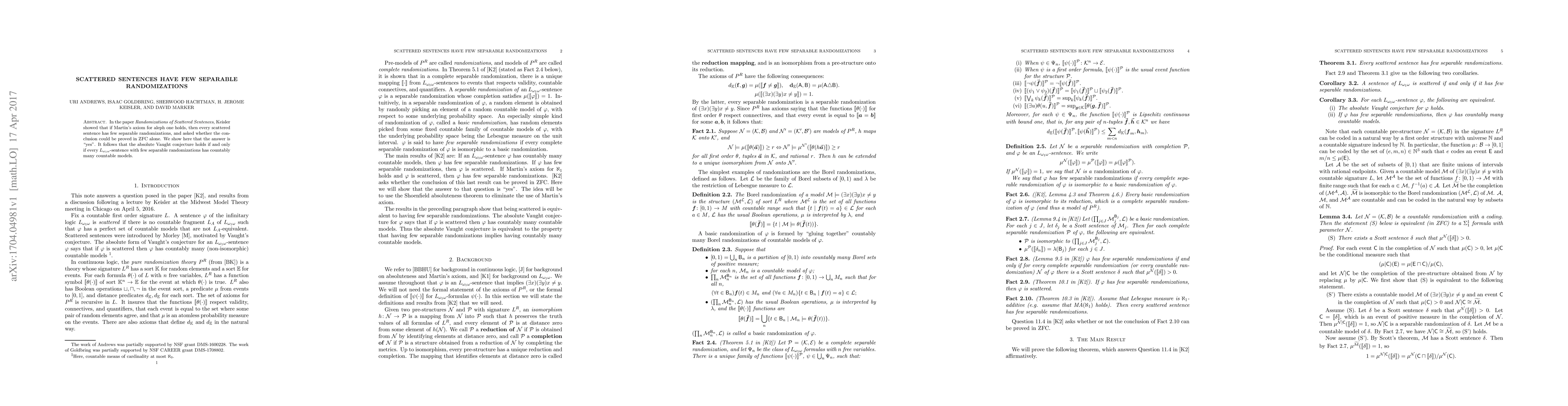 In the paper "Randomizations of Scattered Sentences", Keisler showed that if Martin's axiom for aleph one holds, then every scattered sentence has few separable randomizations, and asked whether the conclusion could be proved in ZFC alone. We show here that the answer is "yes". It follows that the absolute Vaught conjecture holds if and only if every $L_{\omega_1\omega}$-sentence with few separable randomizations has countably many countable models.