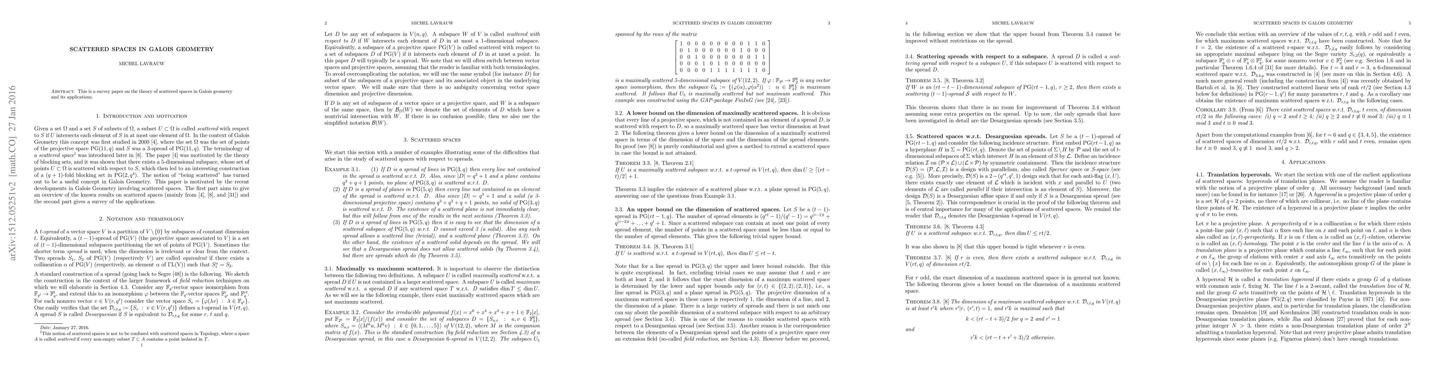 Summary: This survey paper explores the concept of scattered spaces within the framework of Galois geometry, detailing its theoretical foundations and practical applications in various fields.