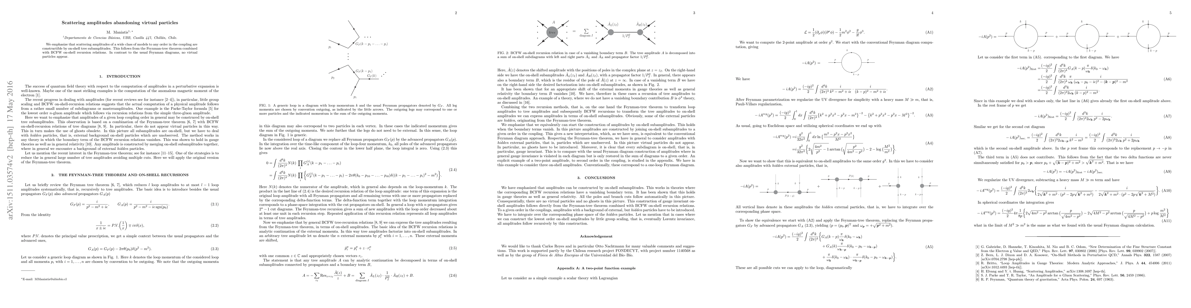 We emphasize that scattering amplitudes of a wide class of models to any order in the coupling are constructible by on-shell tree subamplitudes. This follows from the Feynman-tree theorem combined with BCFW on-shell recursion relations. In contrast to the usual Feynman diagrams, no virtual particles appear.