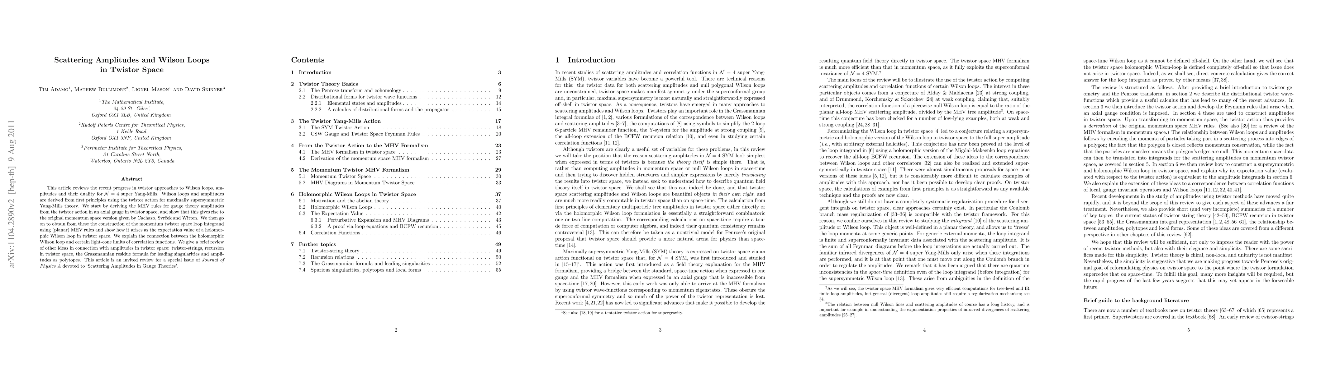 This paper reviews advancements in twistor approaches to derive Wilson loops and scattering amplitudes for N=4 super Yang-Mills, showing their duality and establishing connections to holomorphic Wilson loops in twistor space, and briefly touches on related concepts like twistor strings and recursion formulas.