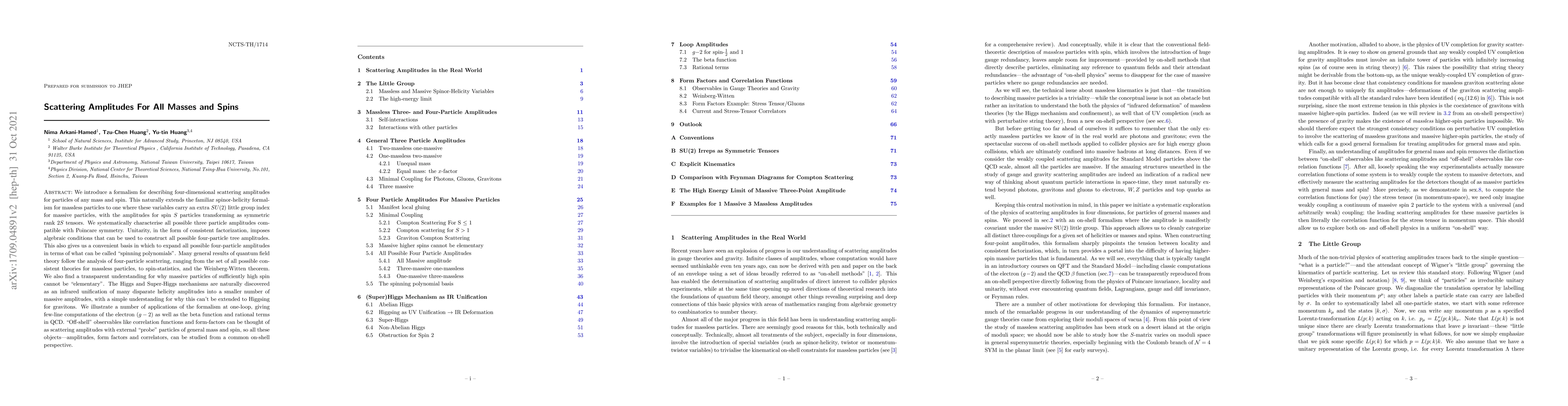 The paper presents a novel extension of the spinor-helicity formalism, offering a unified description of scattering amplitudes for particles across the entire spectrum of masses and spins, which was previously fragmented into distinct treatments for massless and massive particles.