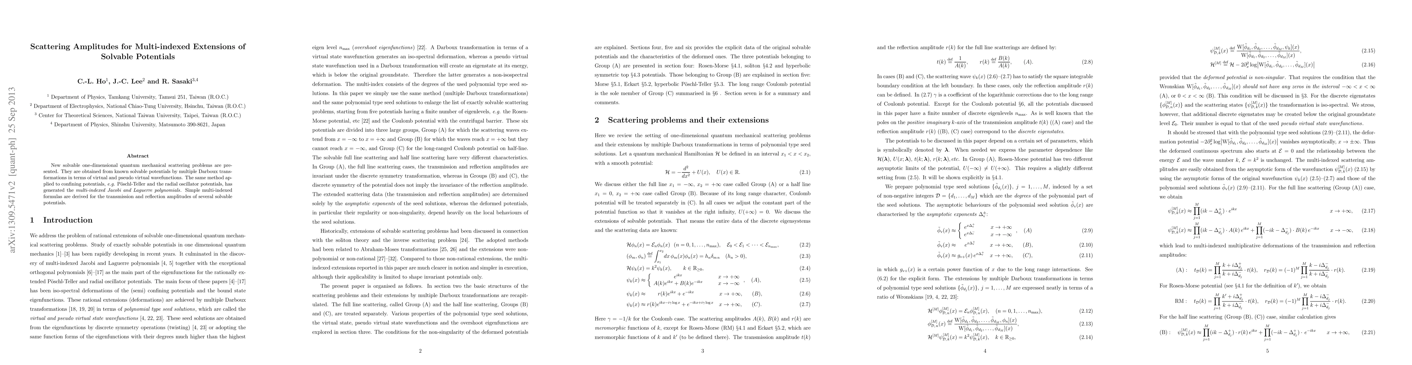 New solvable one-dimensional quantum mechanical scattering problems are presented. They are obtained from known solvable potentials by multiple Darboux transformations in terms of virtual and pseudo virtual wavefunctions. The same method applied to confining potentials, e.g. P\"oschl-Teller and the radial oscillator potentials, has generated the {\em multi-indexed Jacobi and Laguerre polynomials}. Simple multi-indexed formulas are derived for the transmission and reflection amplitudes of several solvable potentials.