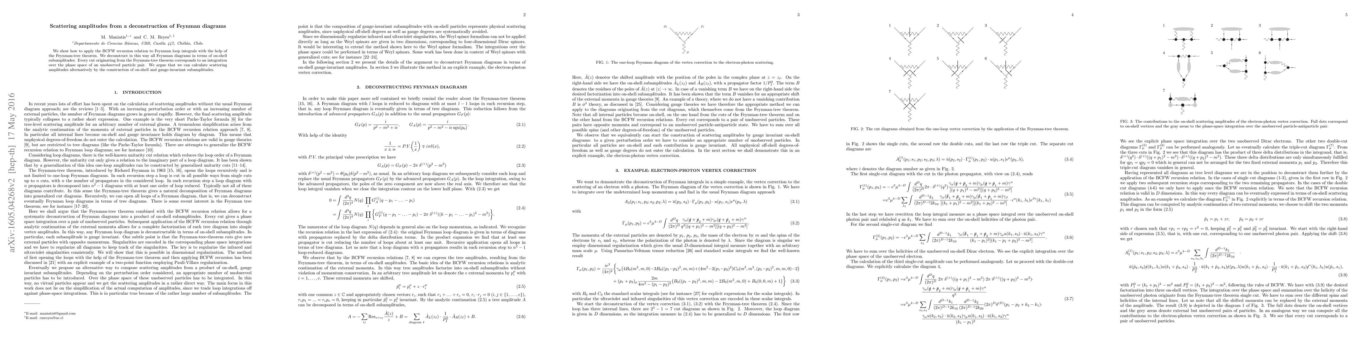 We show how to apply the BCFW recursion relation to Feynman loop integrals with the help of the Feynman-tree theorem. We deconstruct in this way all Feynman diagrams in terms of on-shell subamplitudes. Every cut originating from the Feynman-tree theorem corresponds to an integration over the phase space of an unobserved particle pair. We argue that we can calculate scattering amplitudes alternatively by the construction of on-shell and gauge-invariant subamplitudes.