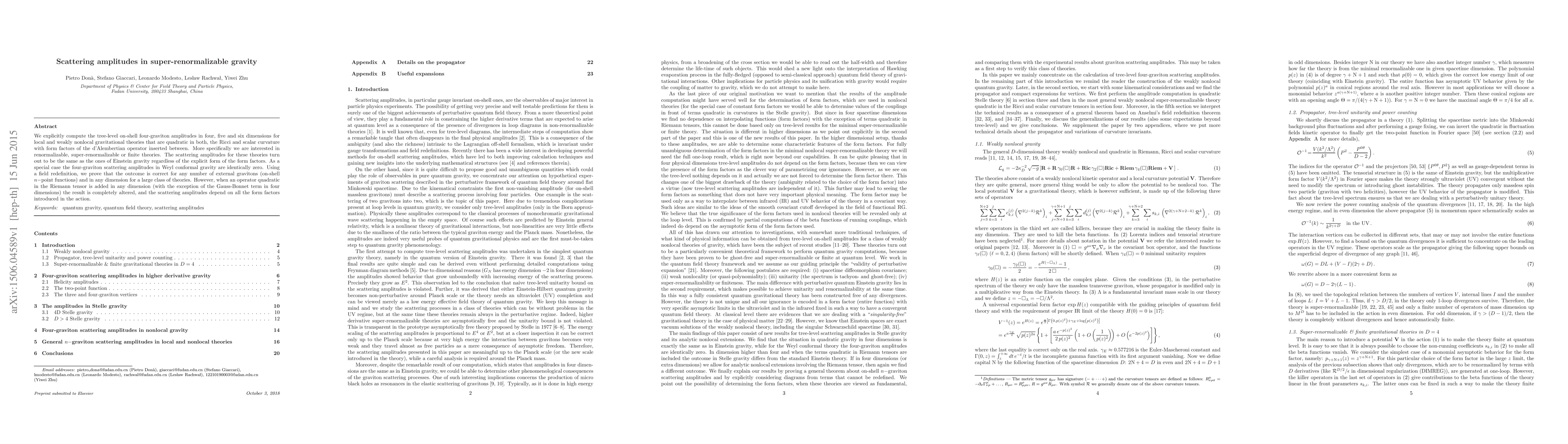 This paper computes tree-level four-graviton scattering amplitudes in various dimensions for super-renormalizable gravity theories. It finds these amplitudes are identical to those in Einstein gravity, regardless of the specific form factors, except for Weyl conformal gravity where they are zero.