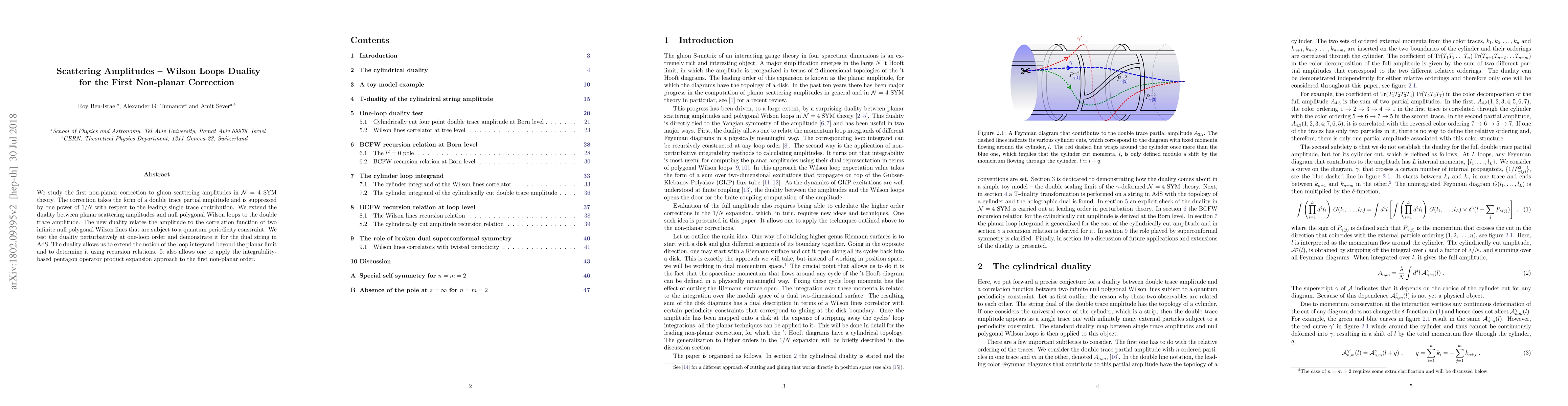 We study the first non-planar correction to gluon scattering amplitudes in ${\cal N}=4$ SYM theory. The correction takes the form of a double trace partial amplitude and is suppressed by one power of $1/N$ with respect to the leading single trace contribution. We extend the duality between planar scattering amplitudes and null polygonal Wilson loops to the double trace amplitude. The new duality relates the amplitude to the correlation function of two infinite null polygonal Wilson lines that are subject to a quantum periodicity constraint. We test the duality perturbatively at one-loop order and demonstrate it for the dual string in AdS. The duality allows us to extend the notion of the loop integrand beyond the planar limit and to determine it using recursion relations. It also allows one to apply the integrability-based pentagon operator product expansion approach to the first non-planar order.