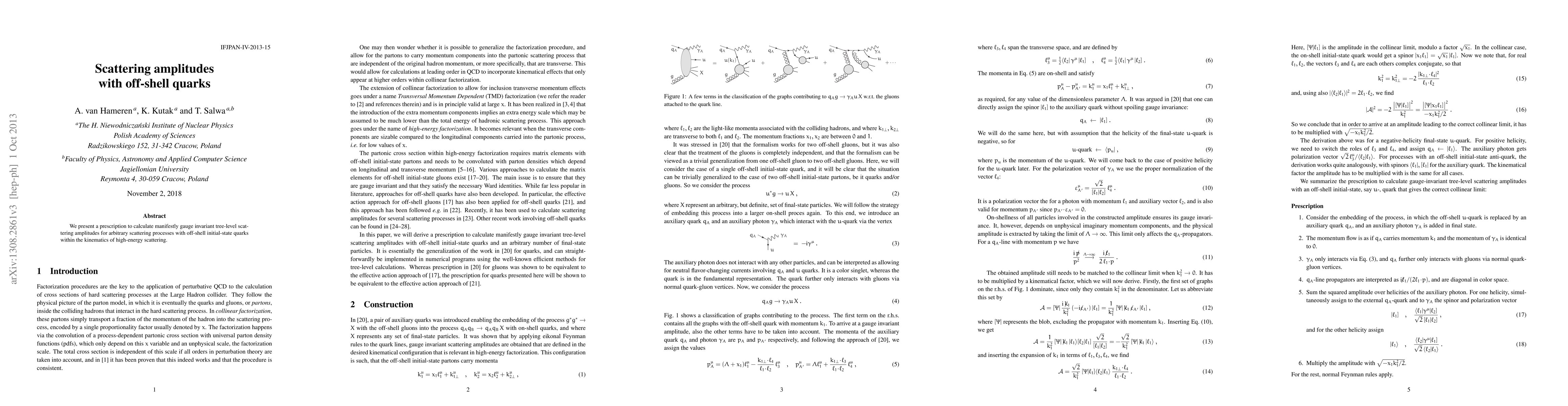 Summary: The paper proposes a method to compute gauge-invariant tree-level scattering amplitudes for high-energy processes involving off-shell initial-state quarks, ensuring consistency with theoretical frameworks. This approach is essential for precise predictions in quantum field theory.