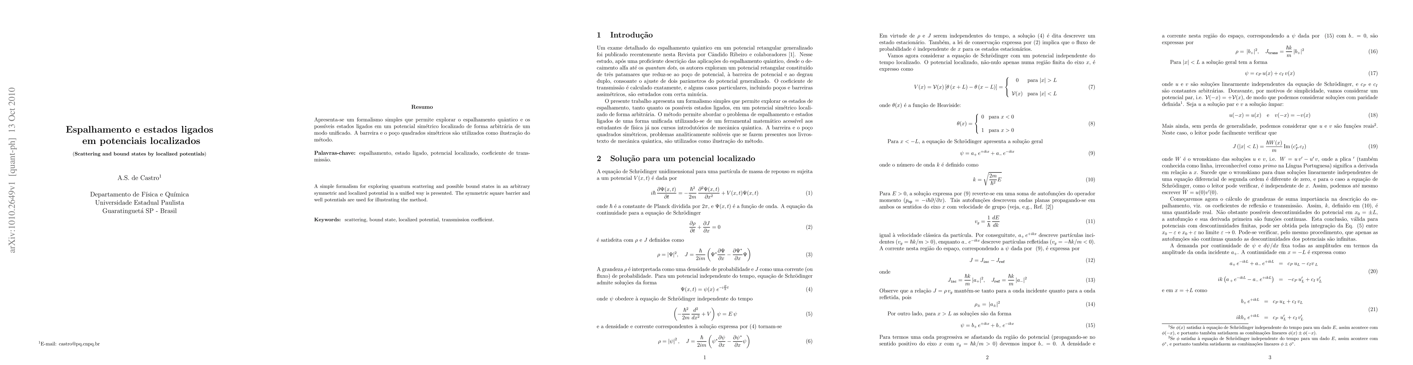 This paper introduces a unified formalism for analyzing quantum scattering and bound states within symmetric and localized potentials. It demonstrates the method using symmetric square barrier and well potentials to illustrate its application.