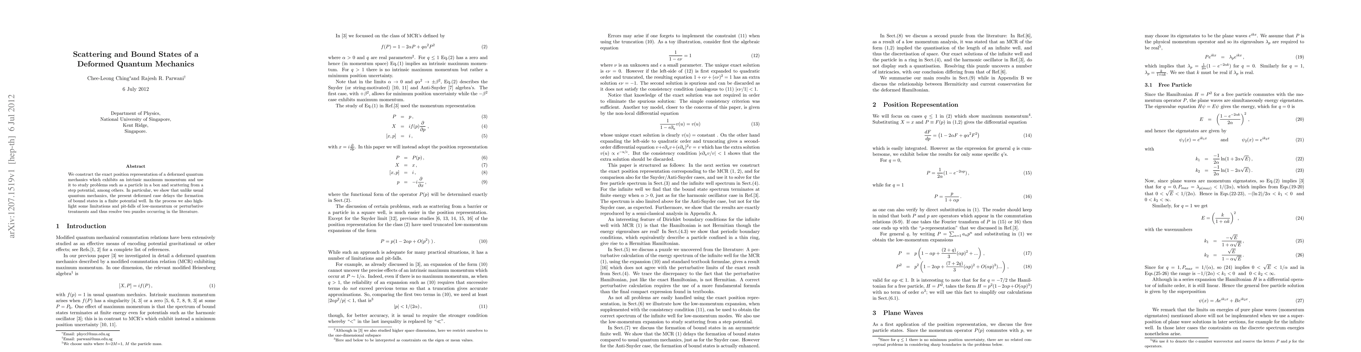 We construct the exact position representation of a deformed quantum mechanics which exhibits an intrinsic maximum momentum and use it to study problems such as a particle in a box and scattering from a step potential, among others. In particular, we show that unlike usual quantum mechanics, the present deformed case delays the formation of bound states in a finite potential well. In the process we also highlight some limitations and pit-falls of low-momentum or perturbative treatments and thus resolve two puzzles occurring in the literature.