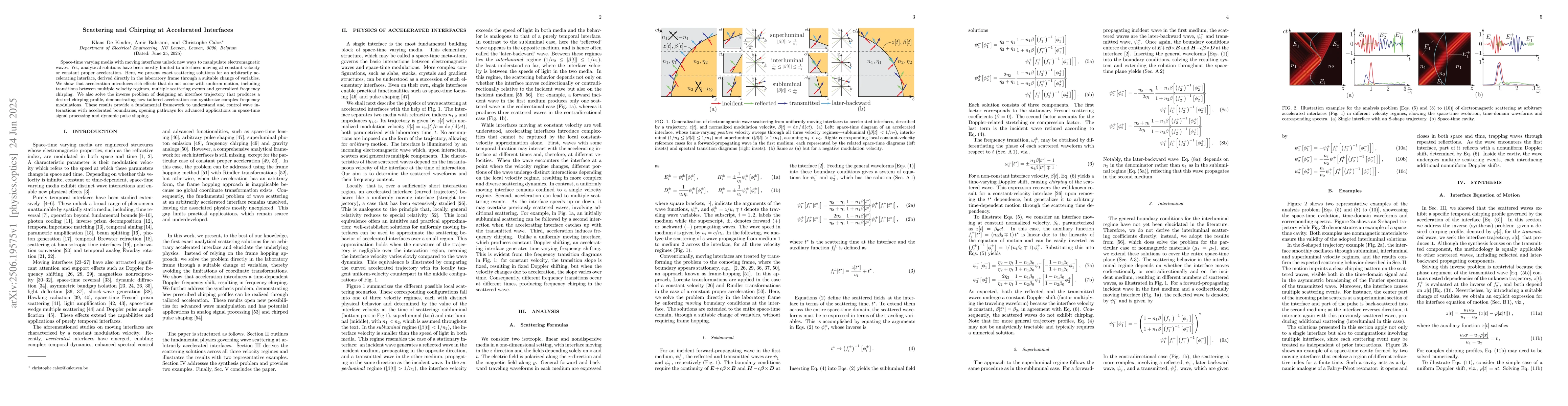 Space-time varying media with moving interfaces unlock new ways to manipulate electromagnetic waves. Yet, analytical solutions have been mostly limited to interfaces moving at constant velocity or constant proper acceleration. Here, we present exact scattering solutions for an arbitrarily accelerating interface, derived directly in the laboratory frame through a suitable change of variables. We show that acceleration introduces rich effects that do not occur with uniform motion, including transitions between multiple velocity regimes, multiple scattering events and generalized frequency chirping. We also solve the inverse problem of designing an interface trajectory that produces a desired chirping profile, demonstrating how tailored acceleration can synthesize complex frequency modulations. These results provide a fundamental framework to understand and control wave interactions with accelerated boundaries, opening pathways for advanced applications in space-time signal processing and dynamic pulse shaping.
