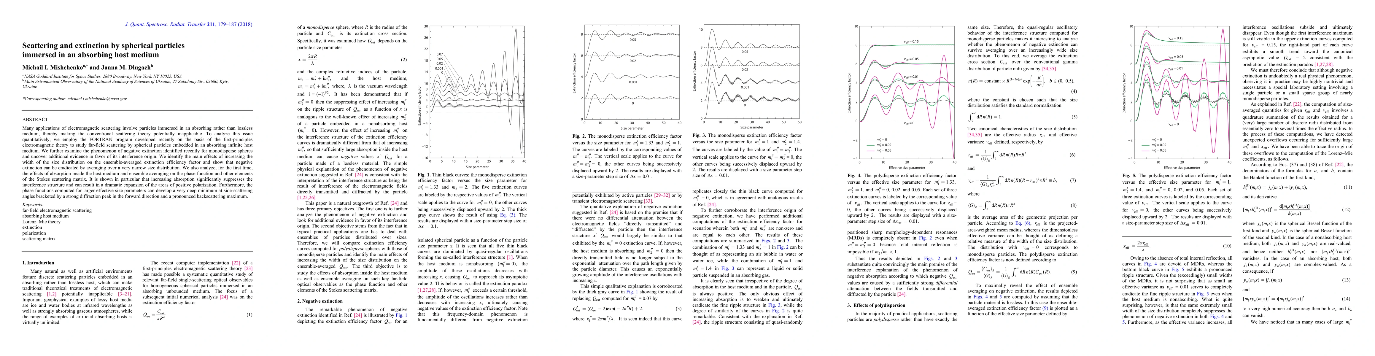 This paper investigates electromagnetic scattering and extinction by spherical particles in an absorbing medium using a FORTRAN program based on first-principles theory. It reveals that negative extinction, previously identified for monodisperse spheres, can be eliminated by averaging over a narrow size distribution and explores the effects of absorption and ensemble averaging on the phase function and Stokes scattering matrix.