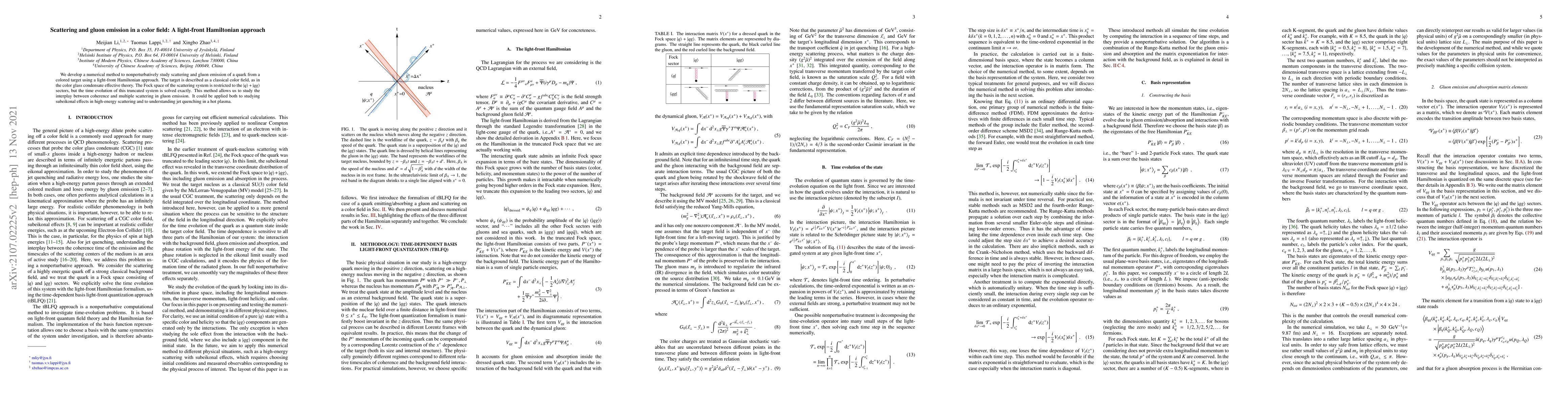 This paper develops a numerical method for studying quark scattering and gluon emission from a classical color field using a light-front Hamiltonian approach, focusing on the $\ket{q}+\ket{qg}$ Fock space sectors. The method elucidates the interplay between coherence and multiple scattering, with potential applications to high-energy scattering and jet quenching in hot plasmas.