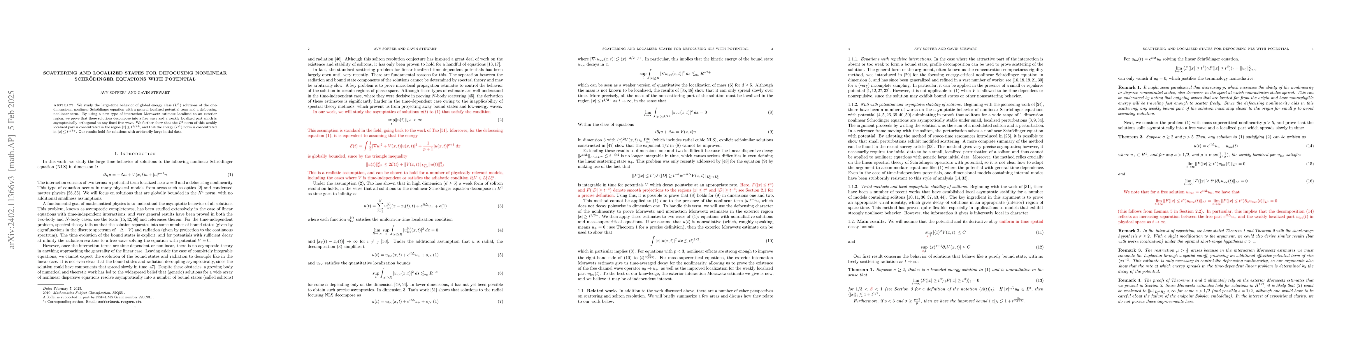 This paper investigates the long-term behavior of solutions to the one-dimensional defocusing nonlinear Schrödinger equation with a localized potential. It demonstrates that solutions decompose into a free wave and a weakly localized part, with the localized part's energy norms concentrated in regions scaling as $t^{1/2+}$ and $t^{1/3+}$ respectively.