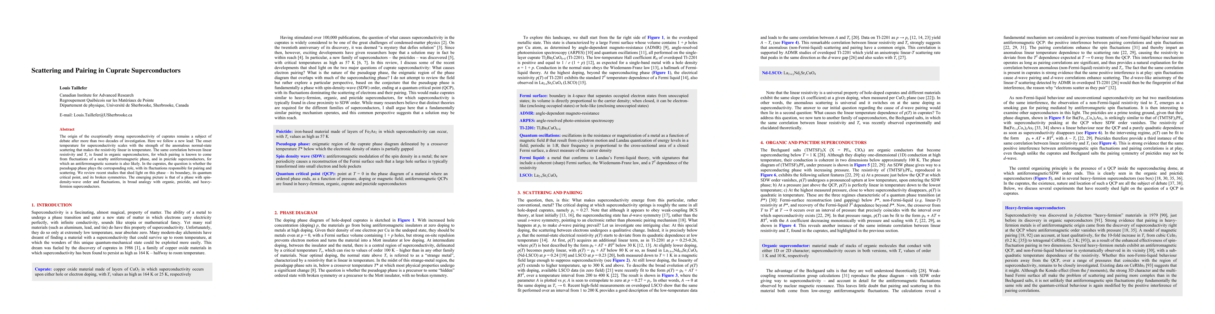 The origin of the exceptionally strong superconductivity of cuprates remains a subject of debate after more than two decades of investigation. Here we follow a new lead: The onset temperature for superconductivity scales with the strength of the anomalous normal-state scattering that makes the resistivity linear in temperature. The same correlation between linear resistivity and Tc is found in organic superconductors, for which pairing is known to come from fluctuations of a nearby antiferromagnetic phase, and in pnictide superconductors, for which an antiferromagnetic scenario is also likely. In the cuprates, the question is whether the pseudogap phase plays the corresponding role, with its fluctuations responsible for pairing and scattering. We review recent studies that shed light on this phase - its boundary, its quantum critical point, and its broken symmetries. The emerging picture is that of a phase with spin-density-wave order and fluctuations, in broad analogy with organic, pnictide, and heavy-fermion superconductors.