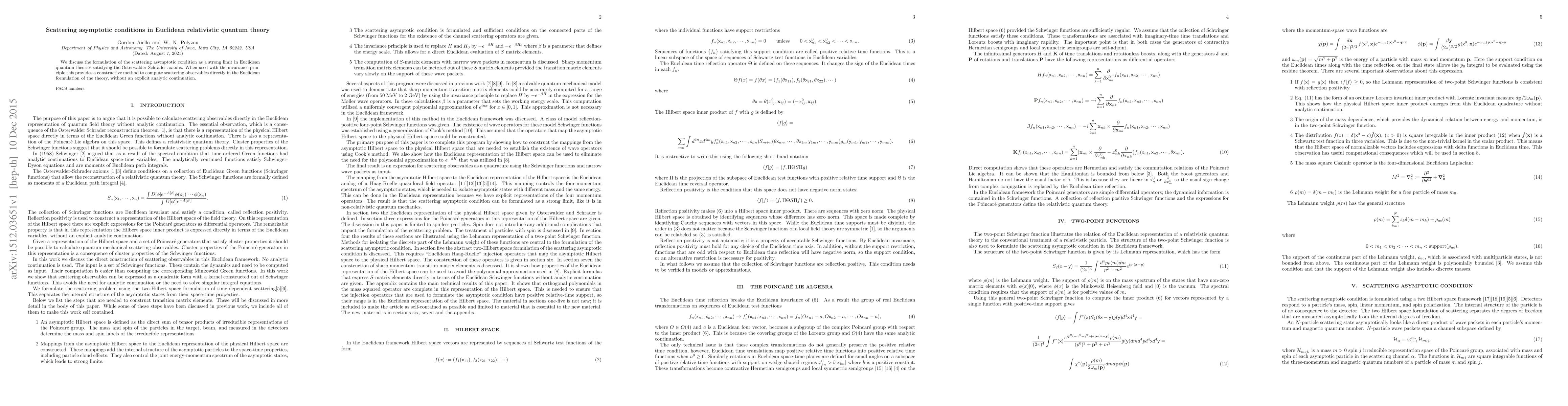 This paper formulates scattering asymptotic conditions as a strong limit in Euclidean relativistic quantum theories adhering to the Osterwalder-Schrader axioms, enabling direct computation of scattering observables in the Euclidean formulation without requiring analytic continuation.