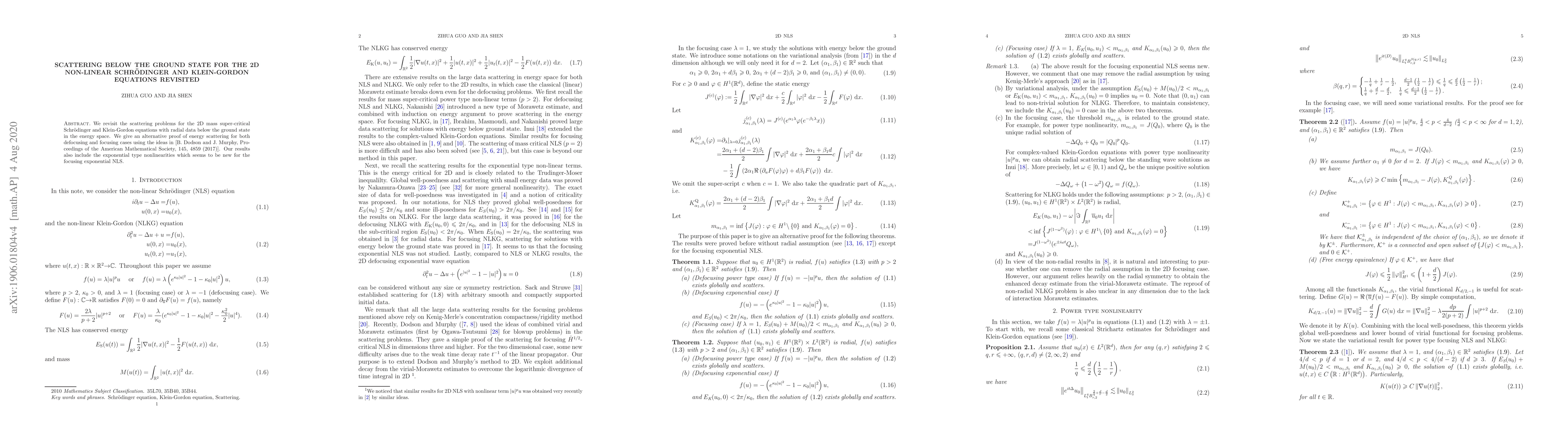 This paper revisits scattering problems for the 2D mass super-critical Schrödinger and Klein-Gordon equations with radial data below the ground state. An alternative proof of energy scattering is provided for both defocusing and focusing cases using Dodson-Murphy's ideas, with new results for exponential nonlinearities in the focusing case.