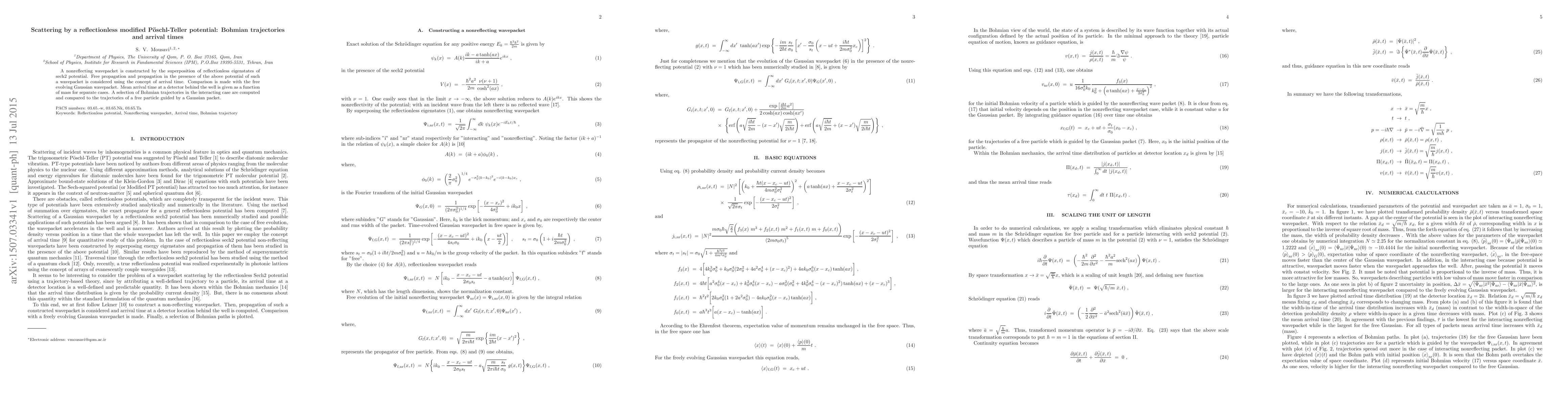 A nonreflecting wavepacket is constructed by the superposition of reflectionless eigenstates of sech2 potential. Free propagation and propagation in the presence of the above potential of such a wavepacket is considered using the concept of arrival time. Comparison is made with the free evolving Gaussian wavepacket. Mean arrival time at a detector behind the well is given as a function of mass for separate cases. A selection of Bohmian trajectories in the interacting case are computed and compared to the trajectories of a free particle guided by a Gaussian packet.