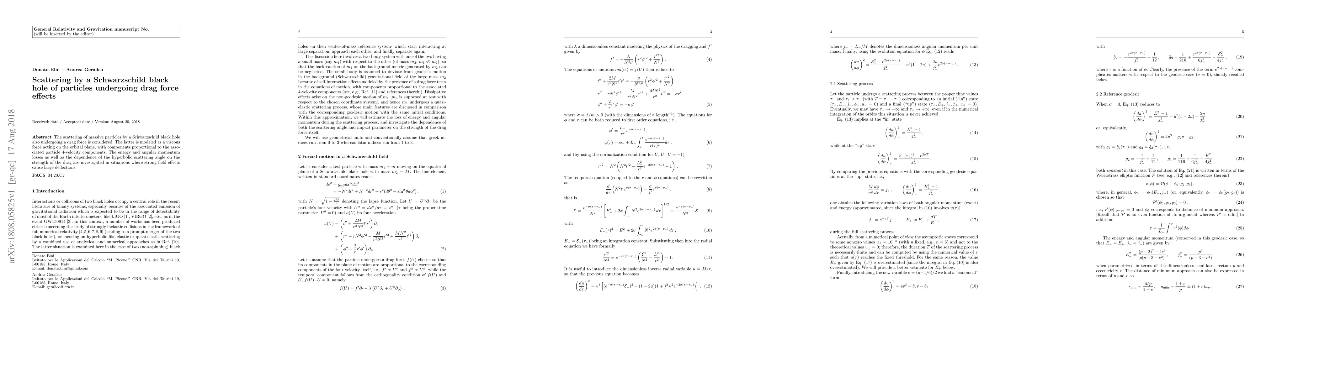 The scattering of massive particles by a Schwarzschild black hole also undergoing a drag force is considered. The latter is modeled as a viscous force acting on the orbital plane, with components proportional to the associated particle 4-velocity components. The energy and angular momentum losses as well as the dependence of the hyperbolic scattering angle on the strength of the drag are investigated in situations where strong field effects cause large deflections.