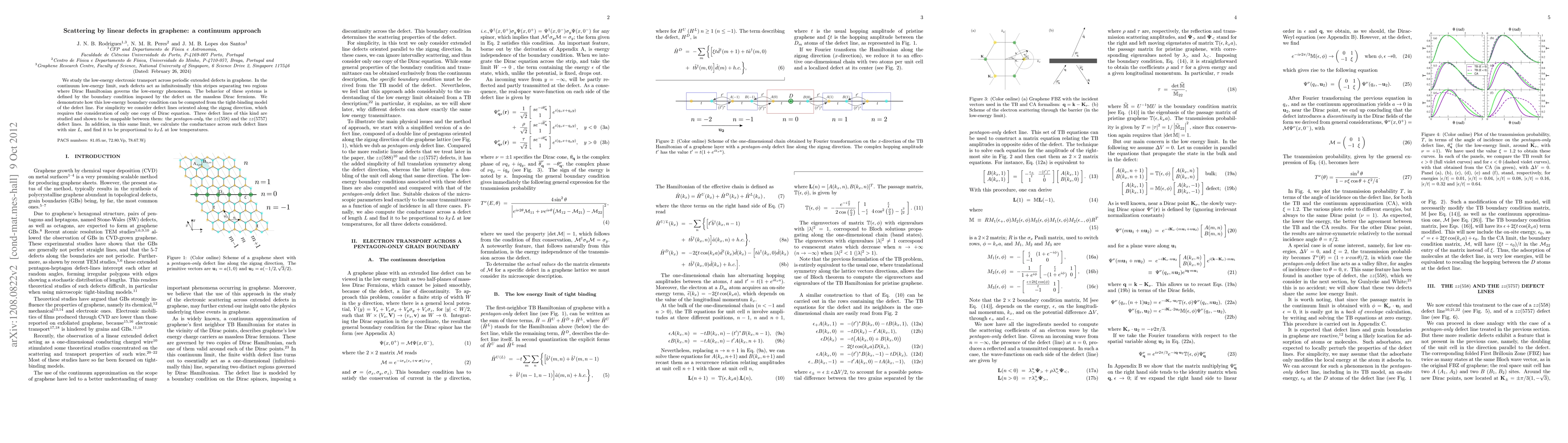 We study the low-energy electronic transport across periodic extended defects in graphene. In the continuum low-energy limit, such defects act as infinitesimally thin stripes separating two regions where Dirac Hamiltonian governs the low-energy phenomena. The behavior of these systems is defined by the boundary condition imposed by the defect on the massless Dirac fermions. We demonstrate how this low-energy boundary condition can be computed from the tight-binding model of the defect line. For simplicity we consider defect lines oriented along the zigzag direction, which requires the consideration of only one copy of Dirac equation. Three defect lines of this kind are studied and shown to be mappable between them: the pentagon-only, the zz(558) and the zz(5757) defect lines. In addition, in this same limit, we calculate the conductance across such defect lines with size L, and find it to be proportional to k_FL at low temperatures.