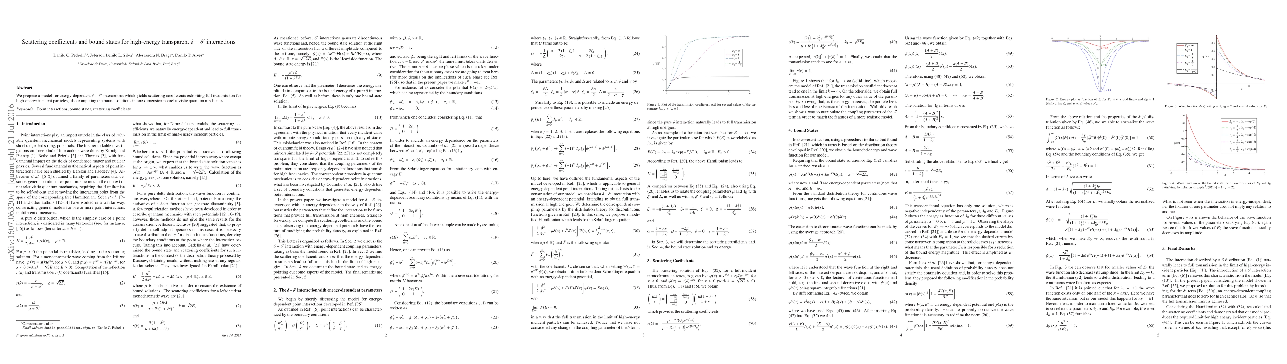 We propose a model for energy-dependent $\delta-\delta^{\prime}$ interactions which yields scattering coefficients exhibiting full transmission for high-energy incident particles, also computing the bound solutions in one-dimension nonrelativistic quantum mechanics.