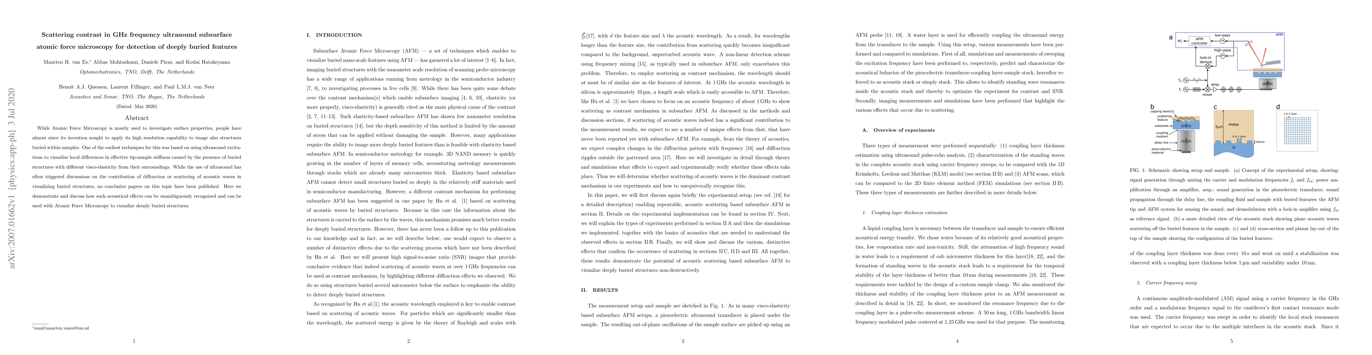 This paper investigates the use of GHz frequency ultrasound in Subsurface Atomic Force Microscopy to detect deeply buried features by analyzing scattering contrast. It demonstrates how acoustic wave scattering effects can be recognized and utilized to visualize structures buried within samples, providing a clearer understanding of subsurface imaging techniques.