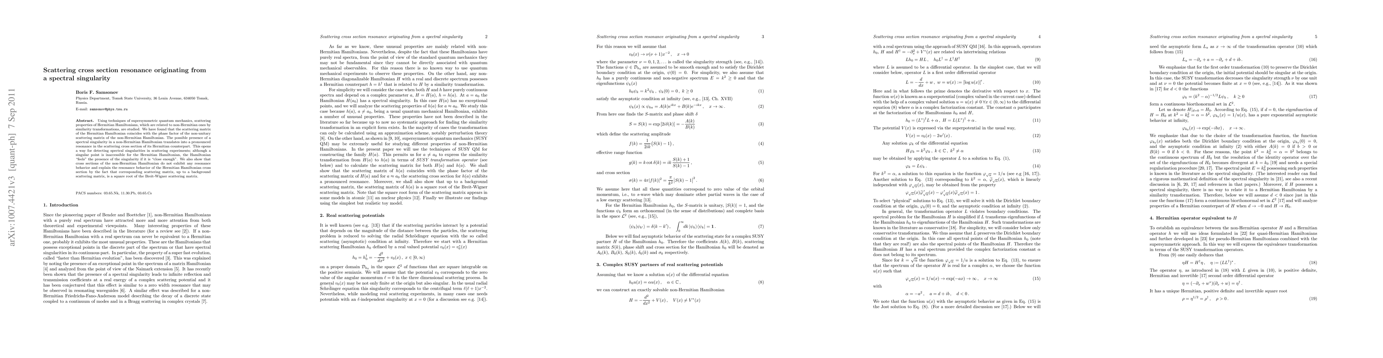 Using techniques of supersymmetric quantum mechanics, scattering properties of Hermitian Hamiltonians, which are related to non-Hermitian ones by similarity transformations, are studied. We have found that the scattering matrix of the Hermitian Hamiltonian coincides with the phase factor of the non-unitary scattering matrix of the non-Hermitian Hamiltonian. The possible presence of a spectral singularity in a non-Hermitian Hamiltonian translates into a pronounced resonance in the scattering cross section of its Hermitian counterpart. This opens a way for detecting spectral singularities in scattering experiments; although a singular point is inaccessible for the Hermitian Hamiltonian, the Hamiltonian "feels" the presence of the singularity if it is "close enough". We also show that cross sections of the non-Hermitian Hamiltonian do not exhibit any resonance behavior and explain the resonance behavior of the Hermitian Hamiltonian cross section by the fact that corresponding scattering matrix, up to a background scattering matrix, is a square root of the Breit-Wigner scattering matrix.