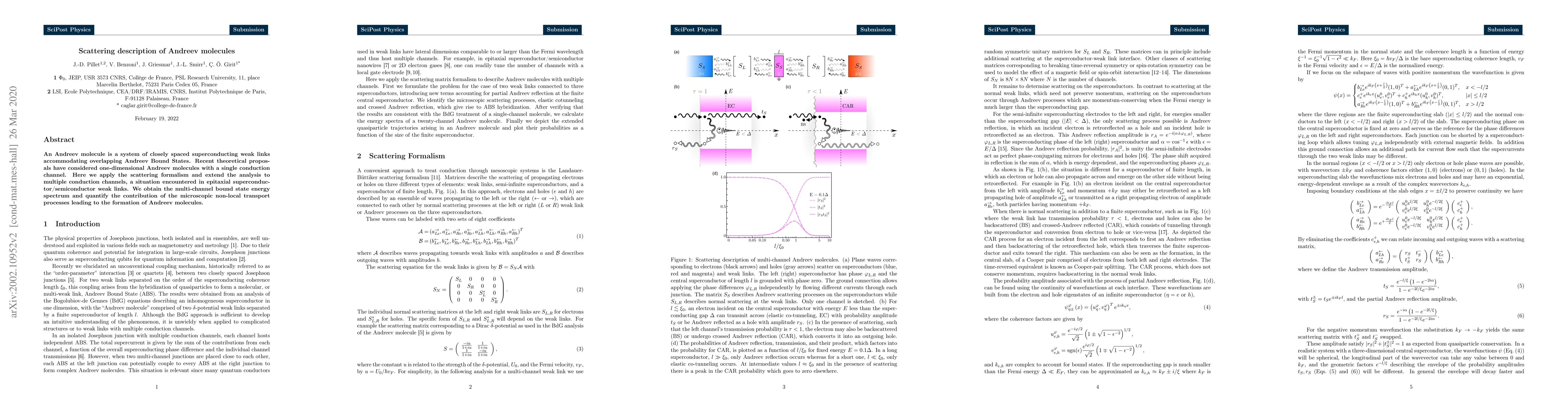 An Andreev molecule is a system of closely spaced superconducting weak links accommodating overlapping Andreev Bound States. Recent theoretical proposals have considered one-dimensional Andreev molecules with a single conduction channel. Here we apply the scattering formalism and extend the analysis to multiple conduction channels, a situation encountered in epitaxial superconductor/semiconductor weak links. We obtain the multi-channel bound state energy spectrum and quantify the contribution of the microscopic non-local processes leading to the formation of Andreev molecules.