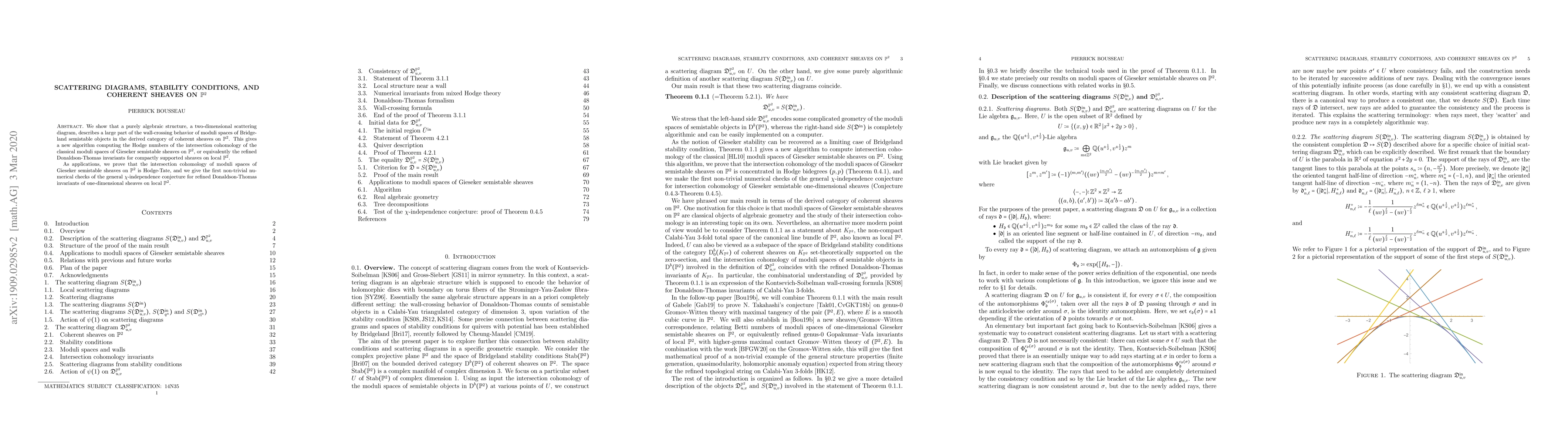 This paper demonstrates that a scattering diagram provides a purely algebraic description of wall-crossing behavior in moduli spaces of Bridgeland semistable objects on $\mathbb{P}^2$. It introduces a new algorithm for computing Hodge numbers and verifies the Hodge-Tate property for intersection cohomology of Gieseker semistable sheaves on $\mathbb{P}^2$.