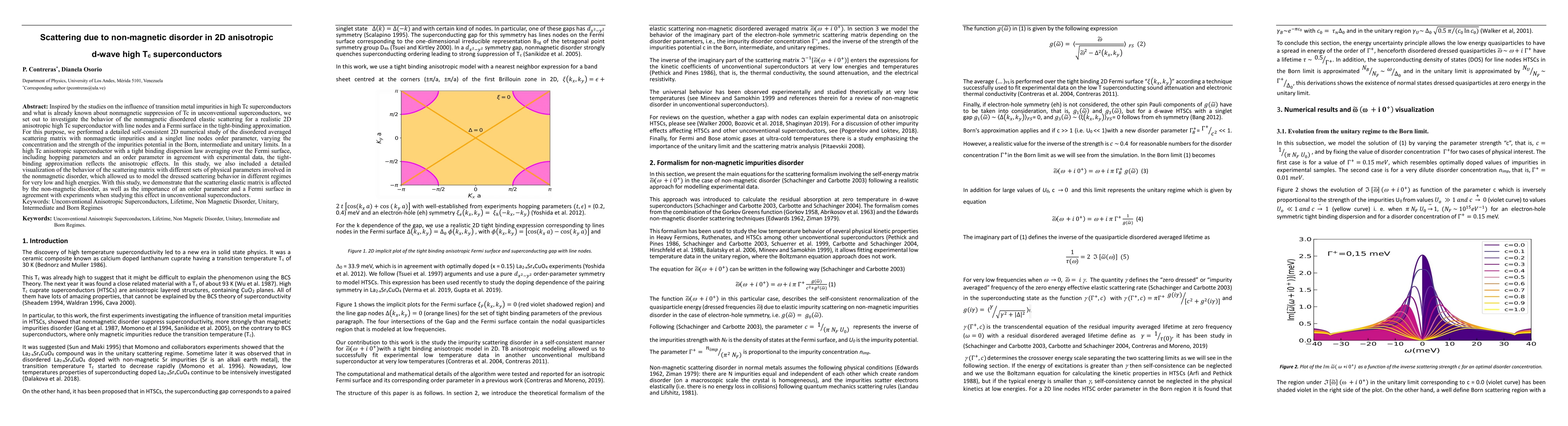 This paper investigates the impact of nonmagnetic disorder on scattering in 2D anisotropic d-wave high Tc superconductors using a tight-binding model. The study reveals that nonmagnetic impurities affect the scattering matrix, highlighting the significance of the order parameter and Fermi surface in understanding unconventional superconductivity.