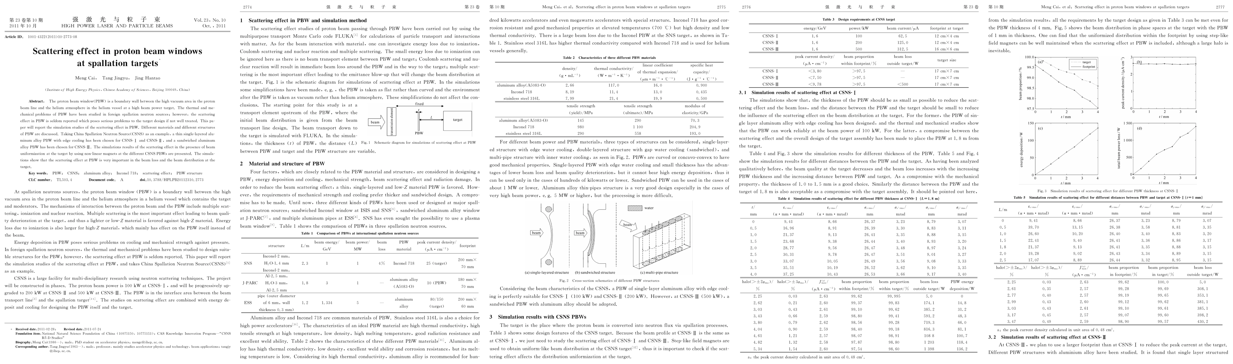 Proton beam window (PBW) is a boundary wall between a high vacuum area in the proton beam line and the helium atmosphere in a helium vessel at a high beam power target. The thermal and mechanical problems of the PBW have been studied in other spallation neutron sources; however, the scattering effect in PBW is seldom reported in literature but it may pose serious problems for the target design if not well treated. This paper will report the simulation studies of the scattering effect in PBW. Different materials and different structures of PBW are discussed. Taking CSNS as an example, a thin single-layer aluminum alloy PBW with edge cooling has been chosen for CSNS-I and CSNS-II, and a sandwiched aluminum alloy PBW has been chosen for CSNS-III. Simulations results of the scattering effect in the presence of beam uniformization at target by using non-linear magnets at the different CSNS PBWs are presented. The simulations show that the scattering effect at PBW is very important in the beam loss and the beam distribution at the target.