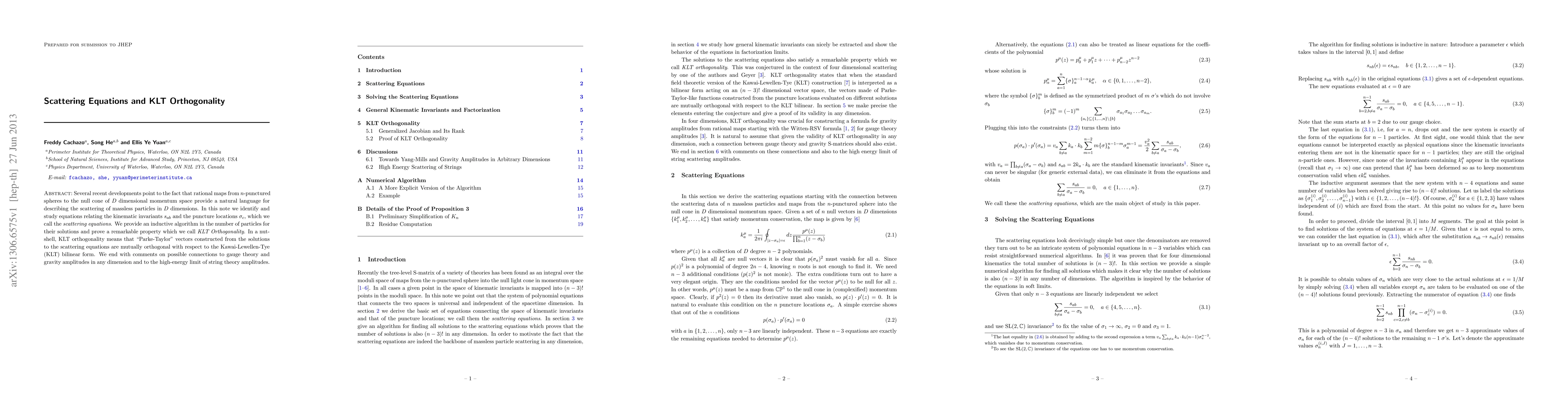 Several recent developments point to the fact that rational maps from n-punctured spheres to the null cone of D dimensional momentum space provide a natural language for describing the scattering of massless particles in D dimensions. In this note we identify and study equations relating the kinematic invariants and the puncture locations, which we call the scattering equations. We provide an inductive algorithm in the number of particles for their solutions and prove a remarkable property which we call KLT Orthogonality. In a nutshell, KLT orthogonality means that "Parke-Taylor" vectors constructed from the solutions to the scattering equations are mutually orthogonal with respect to the Kawai-Lewellen-Tye (KLT) bilinear form. We end with comments on possible connections to gauge theory and gravity amplitudes in any dimension and to the high-energy limit of string theory amplitudes.