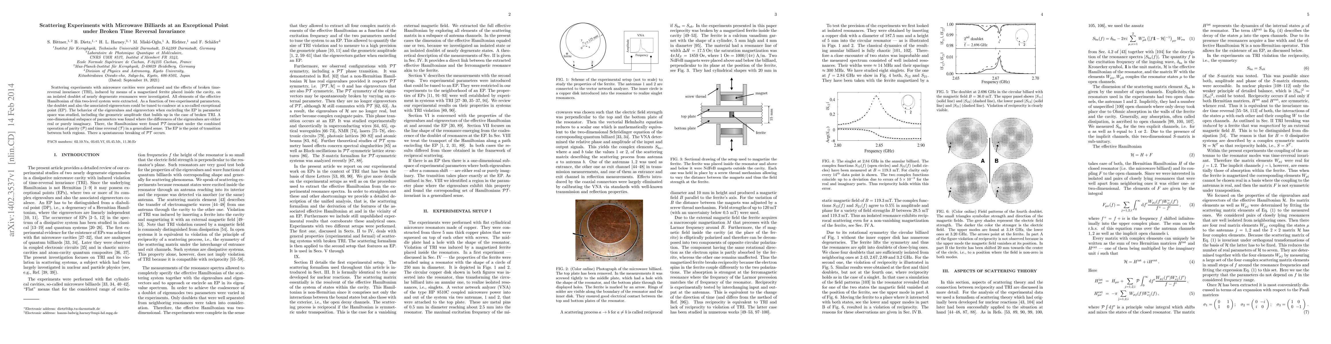 Researchers investigated how breaking time-reversal invariance affects resonance frequencies and eigenvectors in a microwave cavity. They found an 'exceptional point' where the system's behavior changes, exhibiting spontaneous breaking of symmetry.