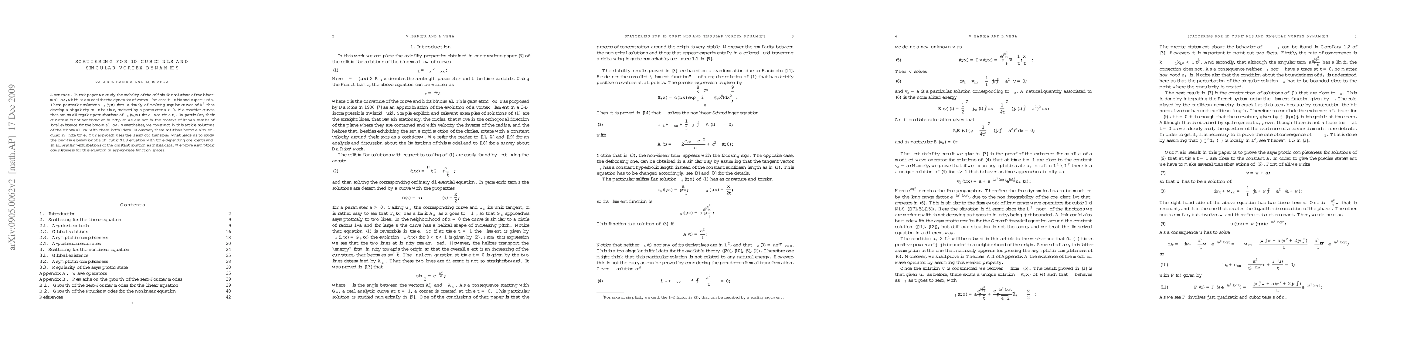 This paper studies the stability of vortex filaments in fluids and super-fluids using a 1D cubic NLS equation, finding solutions that develop singularities in finite time.
