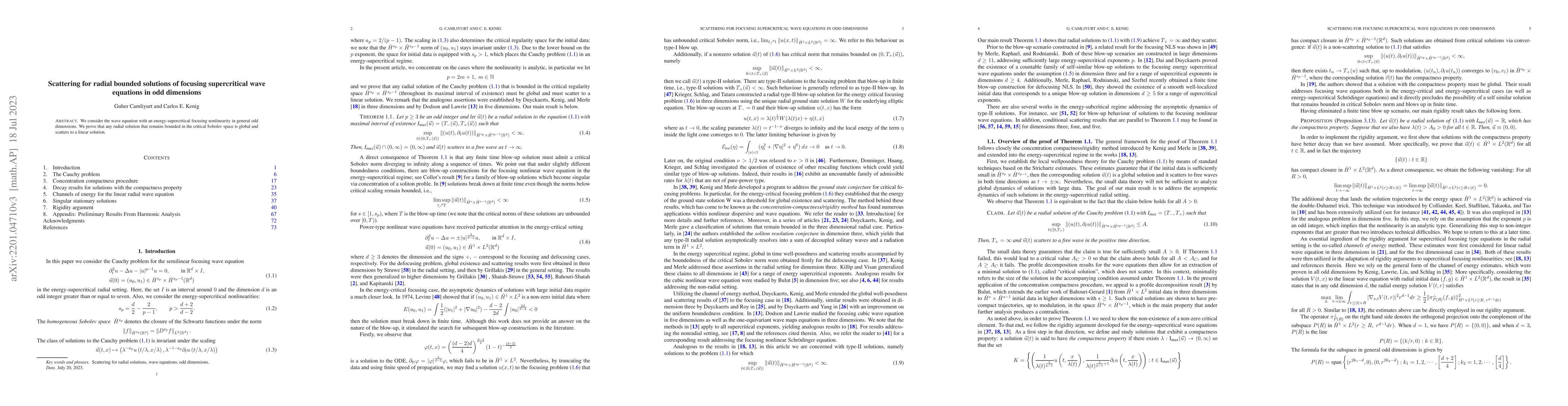 Summary: This paper proves that radial solutions to supercritical wave equations with focusing nonlinearity in odd dimensions remain bounded and are global, ultimately scattering to linear solutions. The result highlights the interplay between nonlinearity and scattering in supercritical settings.