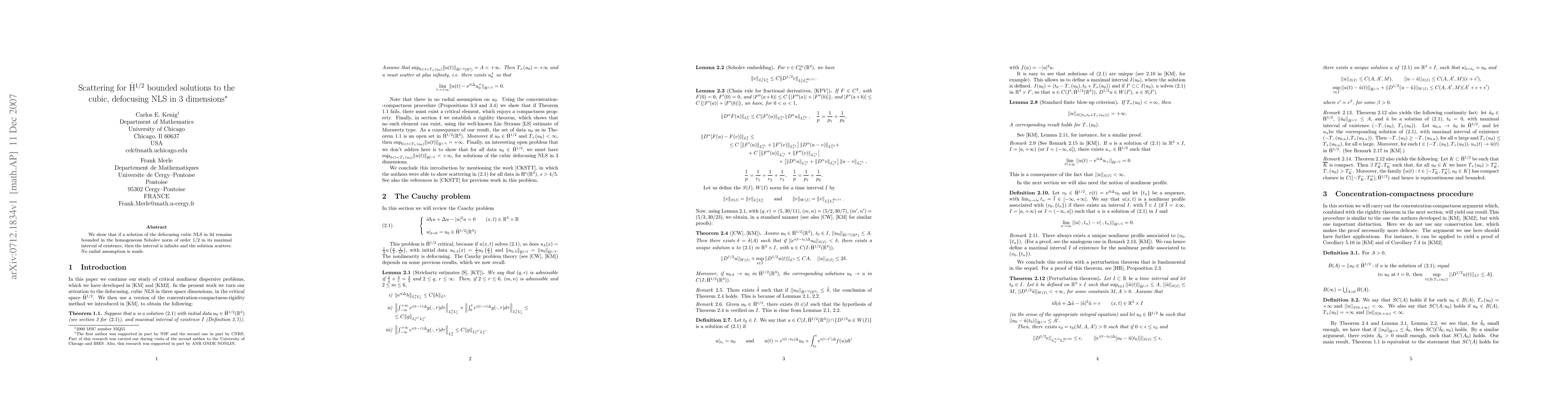 Summary: This paper demonstrates that solutions to the defocusing cubic nonlinear Schrödinger equation in three dimensions that remain bounded in the H^1/2 norm over their maximal existence interval scatter and persist indefinitely. The result holds without any radial symmetry assumption.