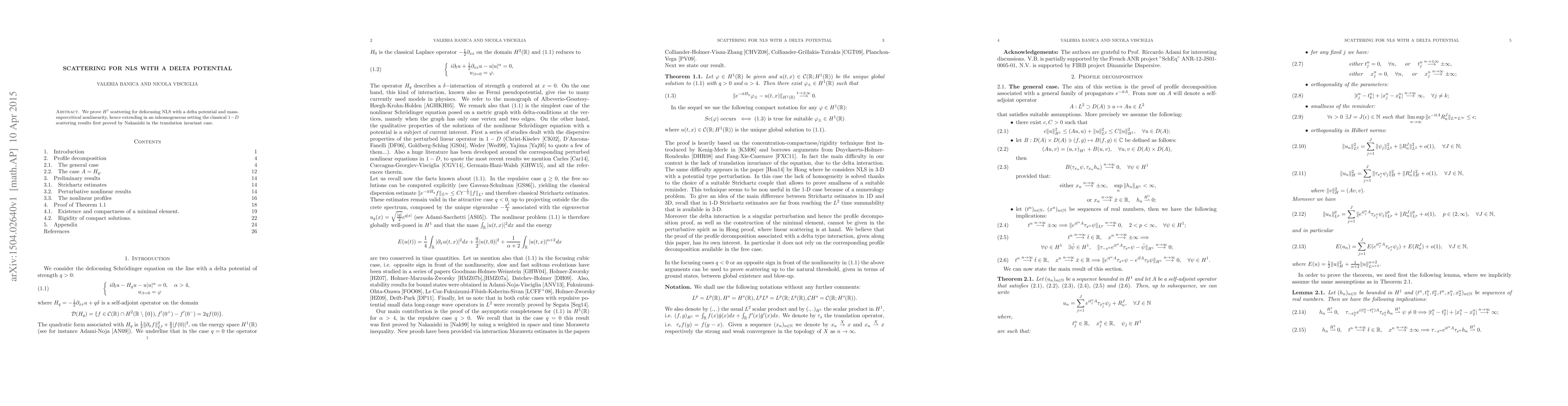 Researchers prove $H^1$ scattering for defocusing NLS with a delta potential, extending classical 1-D scattering results to inhomogeneous settings.